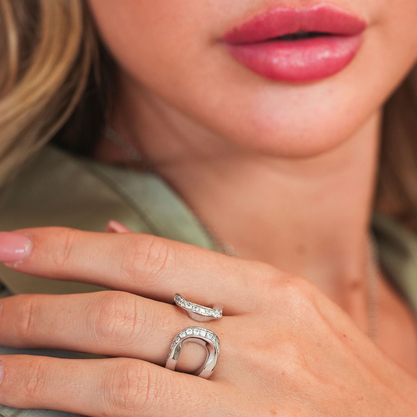 Anello a fascia doppia con zirconi
