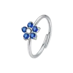 Anello donna in acciaio con fiore e zircone blu Misura regolabile Misura fiore: 8 x 8 mm Diametro zirconi: 2,5 mm. Ispirato alla bellezza della natura, questo gioiello incanta con il suo design floreale raffinato. Perfetto per chi desidera aggiungere un tocco di delicatezza e grazia al proprio stile quotidiano, trasmette una sensazione di freschezza e femminilità .