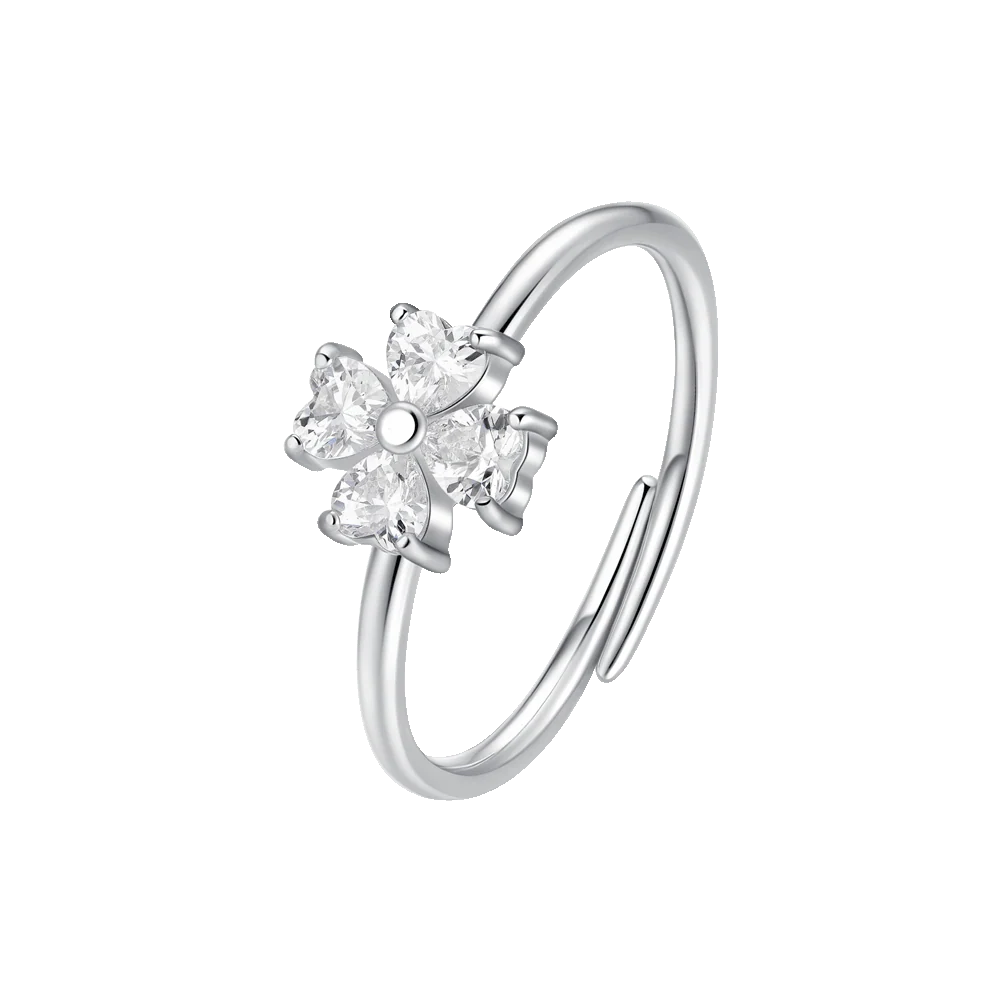 ANELLO DONNA IN ACCIAIO CON QUADRIFOGLIO ZIRCONI BIANCHI