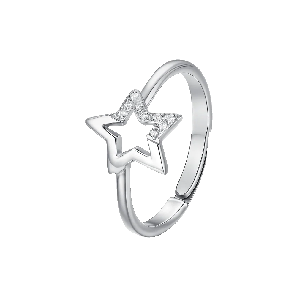 Anello donna in acciaio con stella e punti luce di zircone bianco Misura M da 15 a19. Un gioiello dal design moderno e versatile, perfetto per essere indossato ogni giorno o in momenti speciali. Realizzato con cura, si adatta a ogni stile esaltando la personalità  di chi lo indossa.