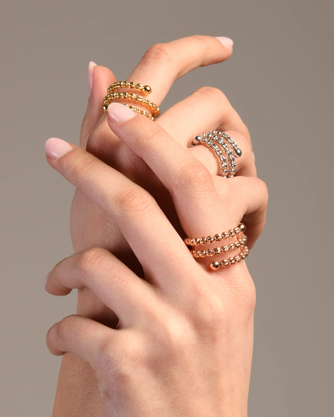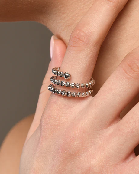 Anello in argento a molla con palline diamantate che regalano una brillantezza unica che dura nel tempo.