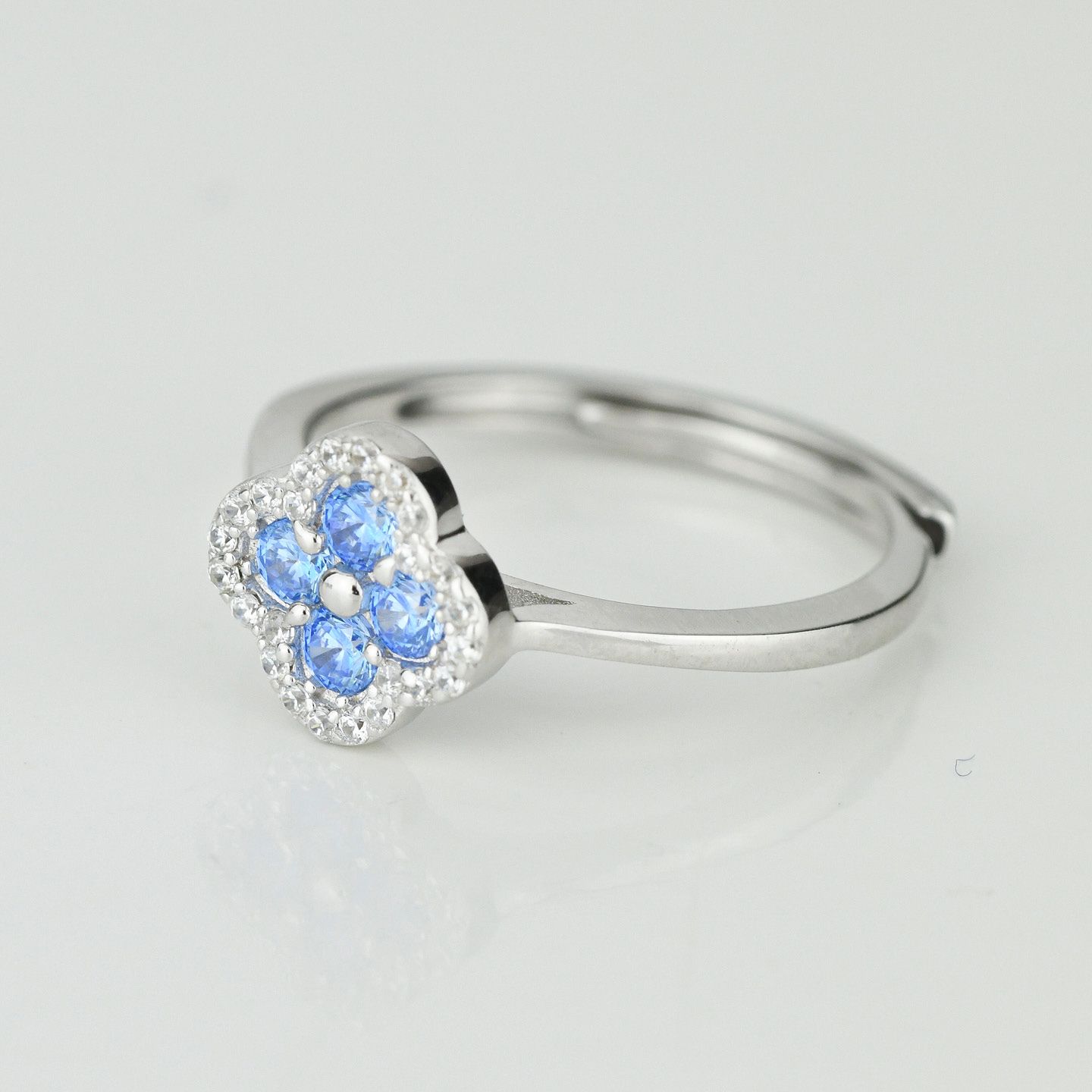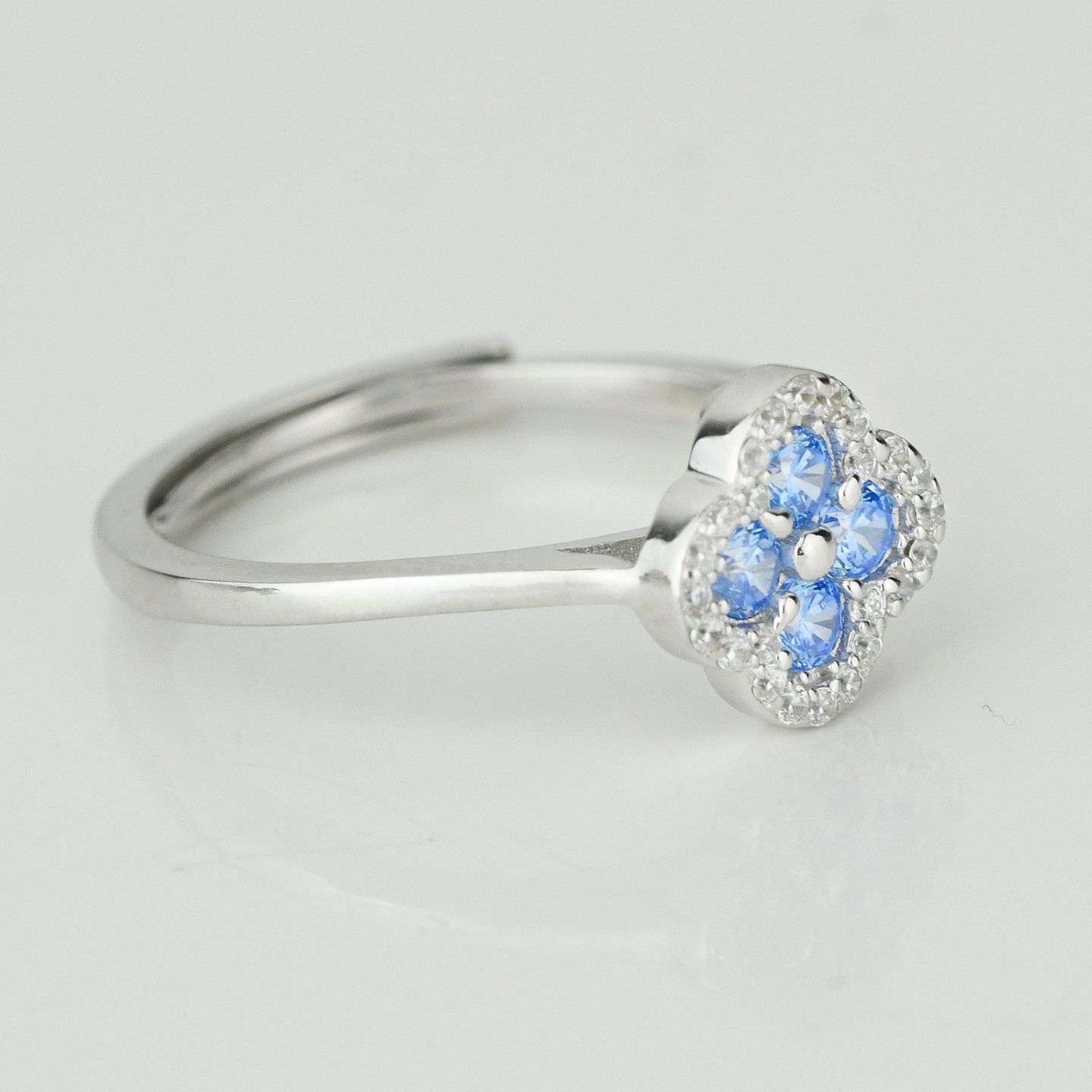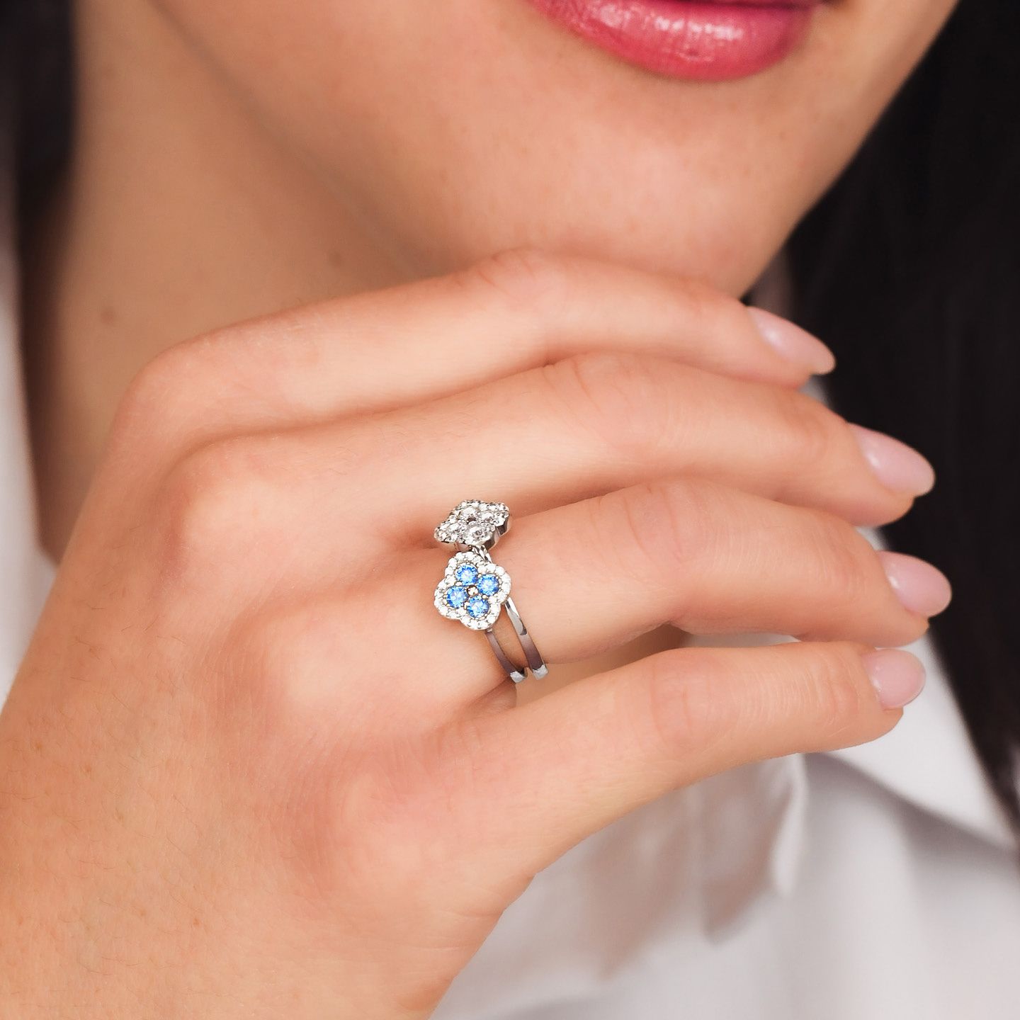 Anello in argento con pavè di zirconi e cristalli acquamarina