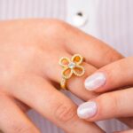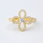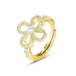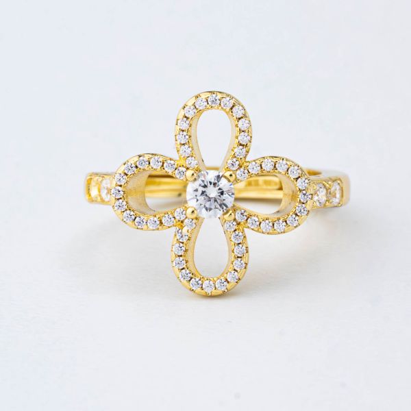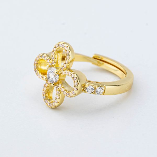Anello placcato oro giallo con quadrifoglio centrale di zirconi