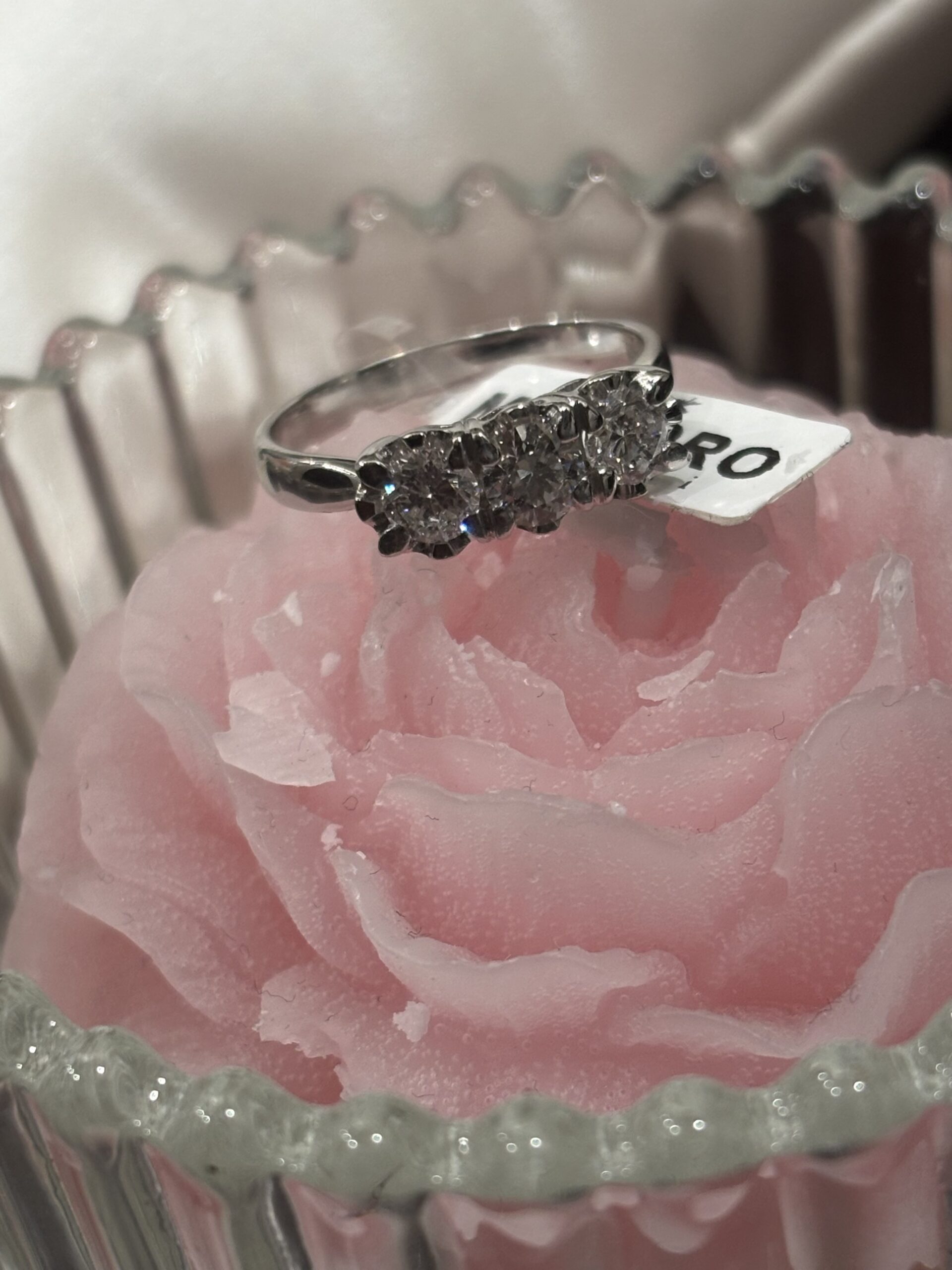 Il design a tre pietre, simbolo di passato, presente e futuro, celebra i momenti più importanti della vita, rendendo questo gioiello la scelta ideale per anniversari, ricorrenze e promesse d’amore.