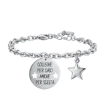 Bracciale in acciaio con smalto nero. Lunghezza: 16,5 + 3 cm. Diametro piastra: 20 mm. Se stai cercando un modo per ricordarti che le tue colleghe sono più di un incontro casuale, allora il Bracciale Donna in Acciaio “”Colleghe per Caso, Amiche per Scelta”” fa proprio al caso Tuo! Con questo prezioso pezzo d’acciaio, rendi omaggio alle persone speciali che hai incontrato sulla strada della vita. Un modo indelebile per riconoscere l’amore incondizionato e la lealtà con loro!