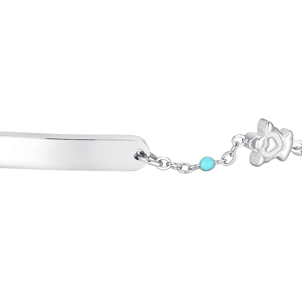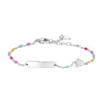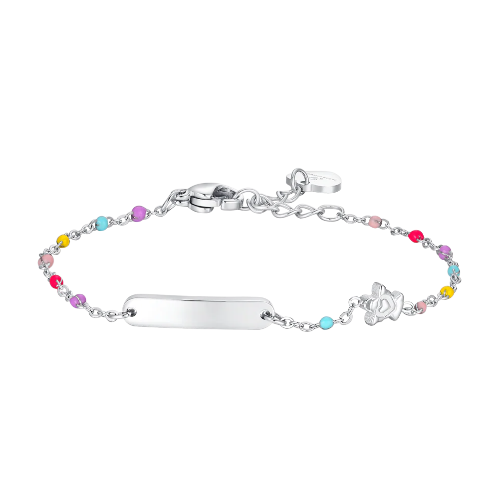 BRACCIALE BAMBINA IN ACCIAIO CON PIASTRA, ANGELO ED ELEMENTI MULTICOLOR