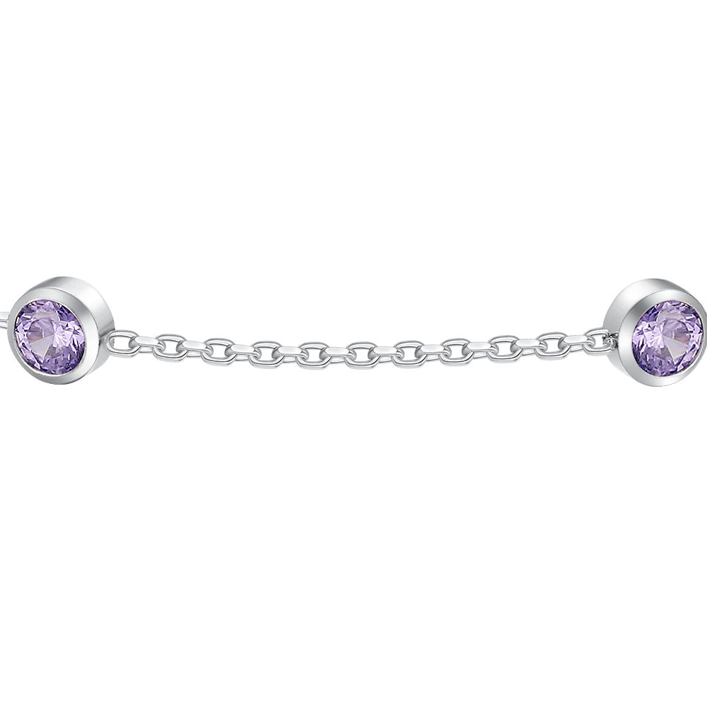 Bracciale bambina in acciaio con zirconi viola Lunghezza: 14 + 2 cm Diametro zirconi: 3 mm