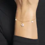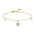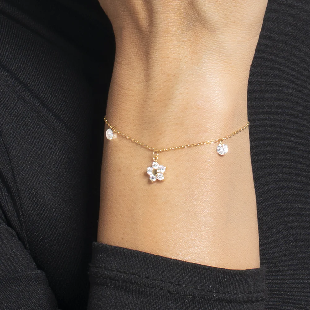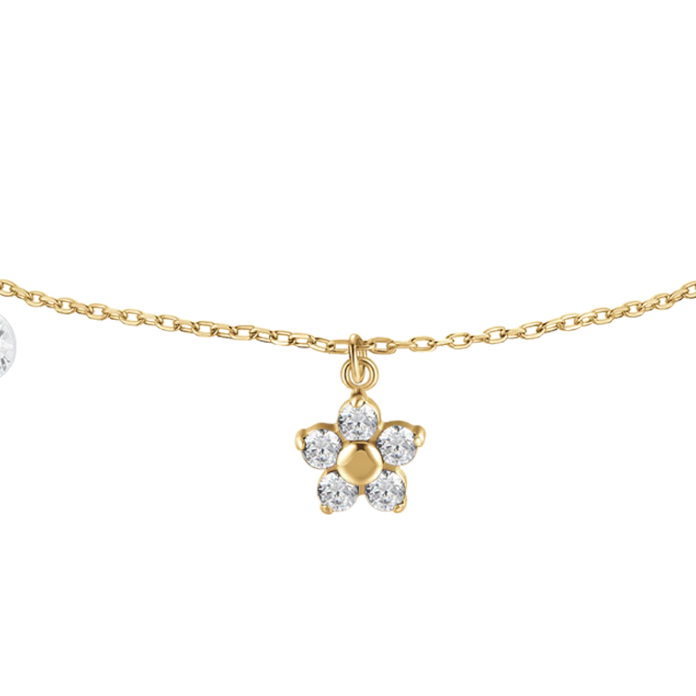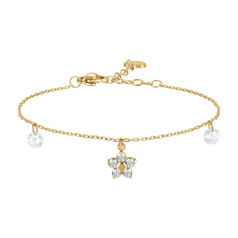 BRACCIALE DONNA IN ACCIAIO COLORE ORO CON PENDENTE FIORE E ZIRCONI BIANCHI