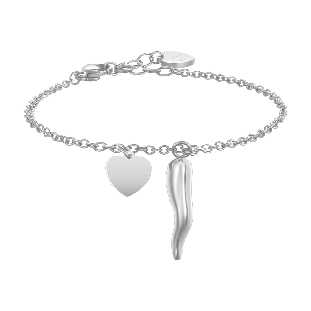 BRACCIALE DONNA IN ACCIAIO CON CUORE E CORNO
