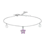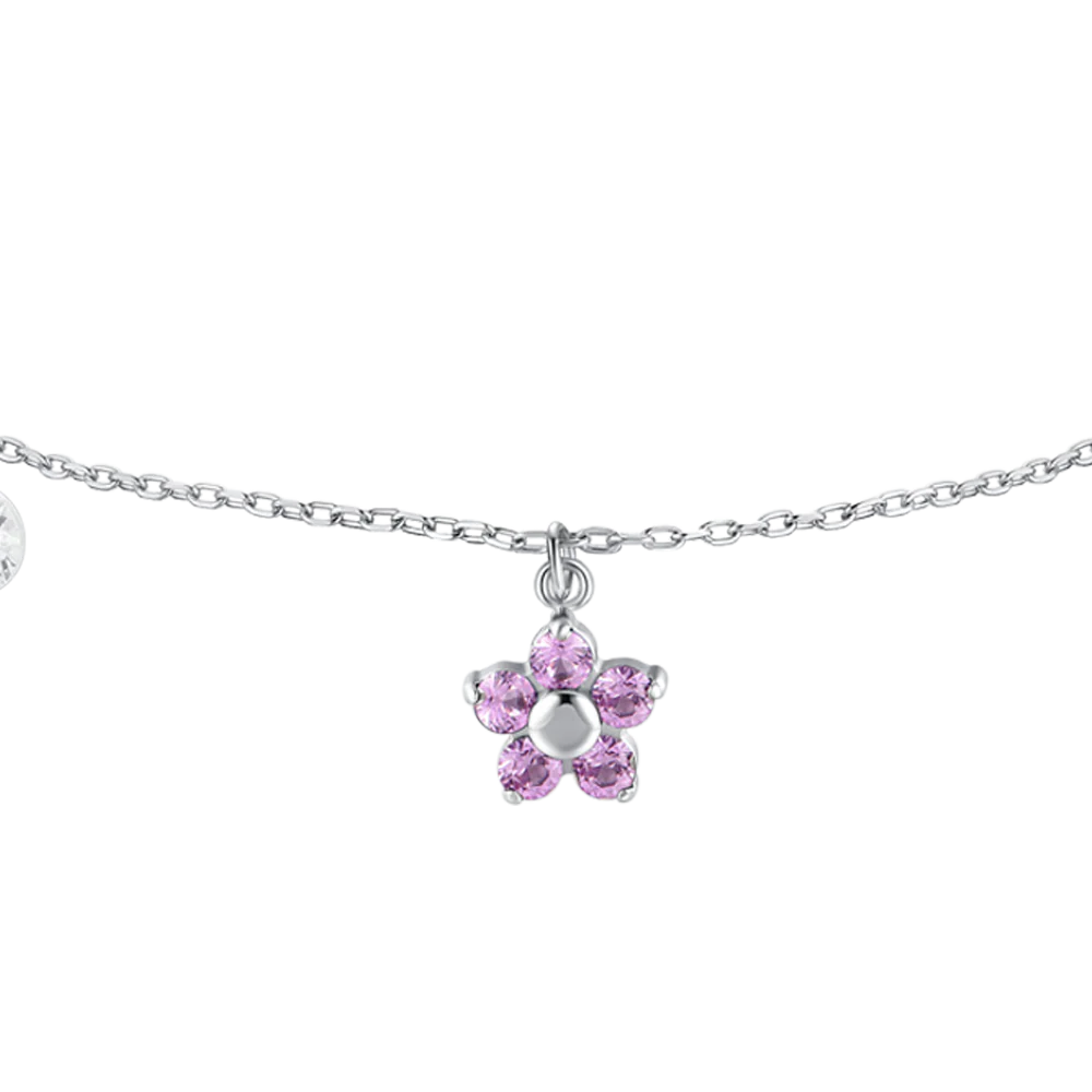 BRACCIALE DONNA IN ACCIAIO CON PENDENTE FIORE E PETALI ZIRCONE ROSA