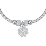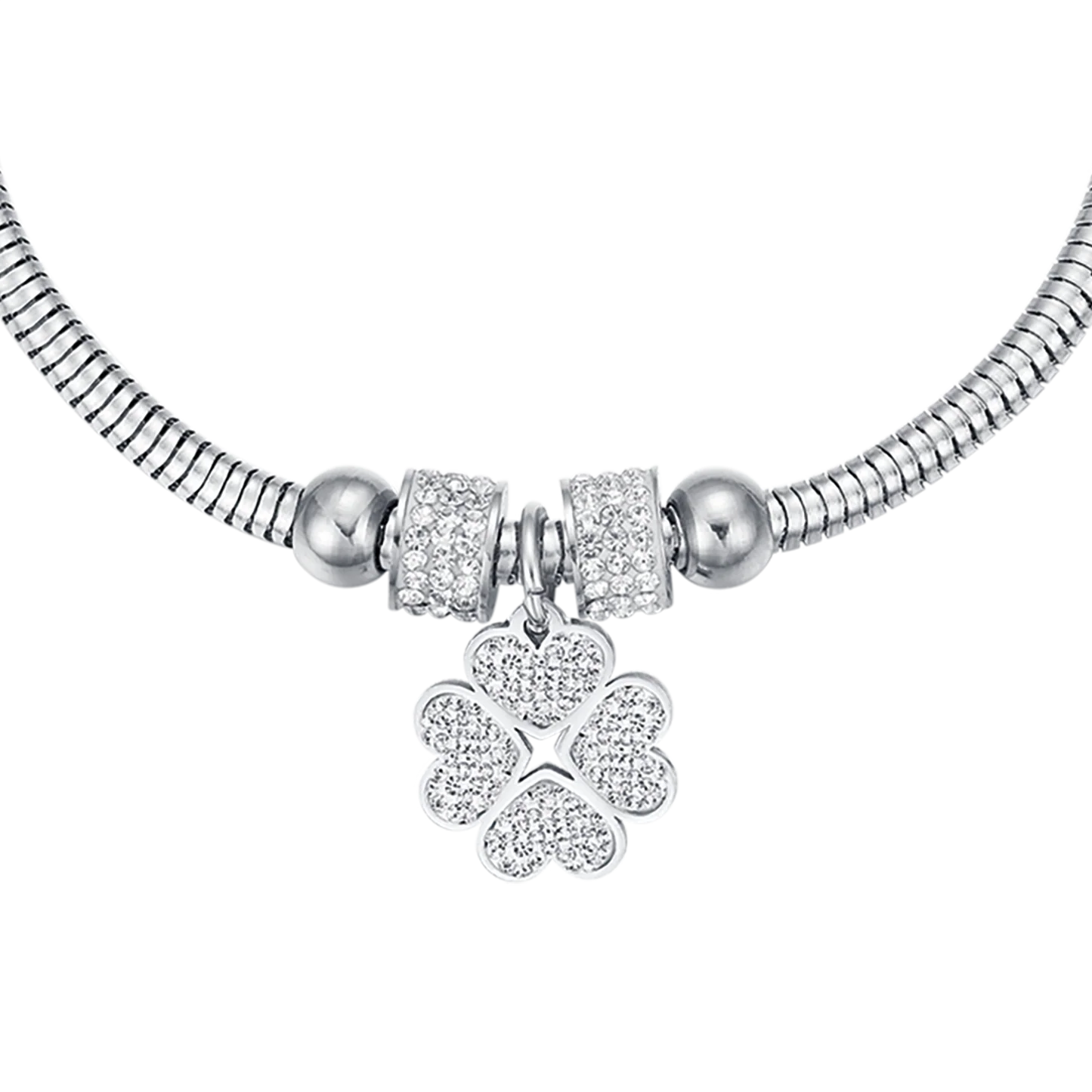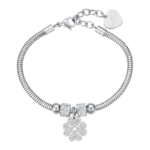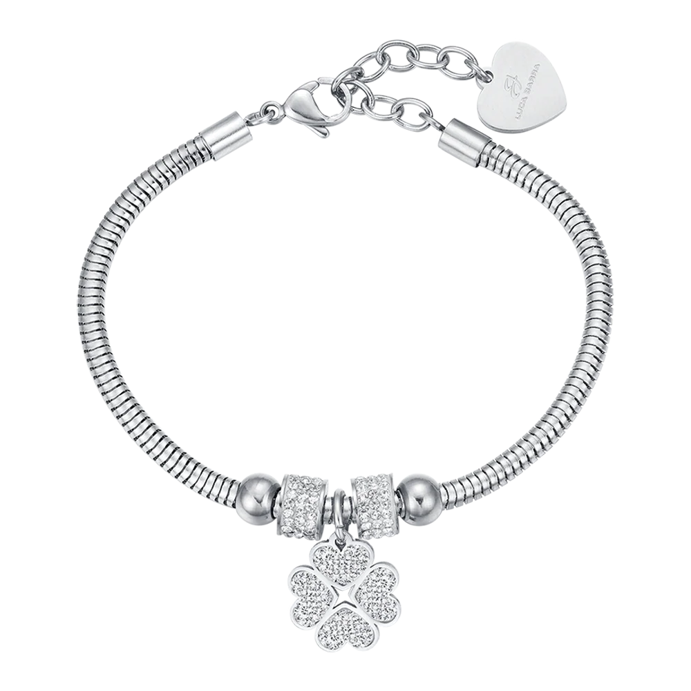 BRACCIALE DONNA IN ACCIAIO CON QUADRIFOGLIO E CRISTALLI BIANCHI