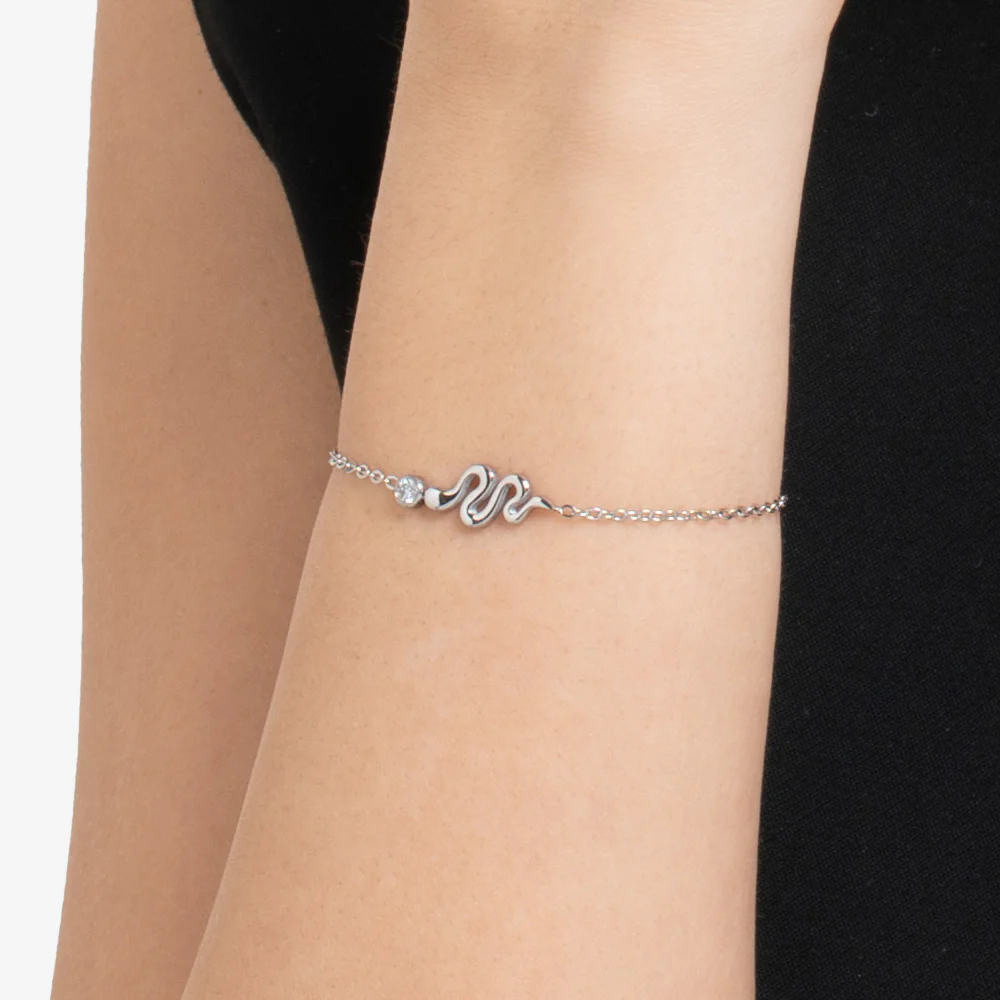 BRACCIALE DONNA IN ACCIAIO CON SERPENTE E CRISTALLO BIANCO