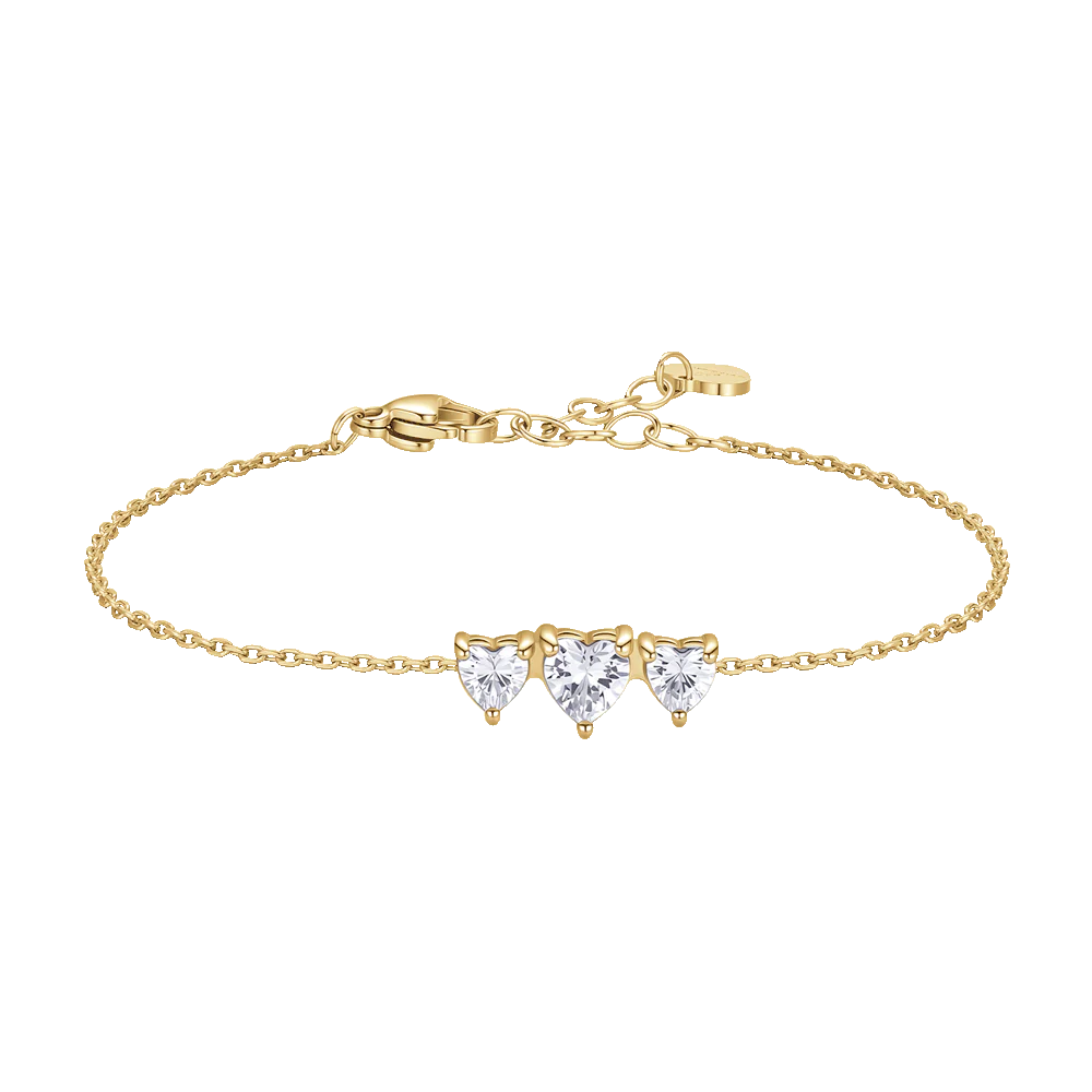 BRACCIALE DONNA IN ACCIAIO IP GOLD CON CUORI CON ZIRCONI BIANCHI