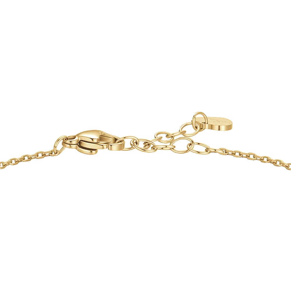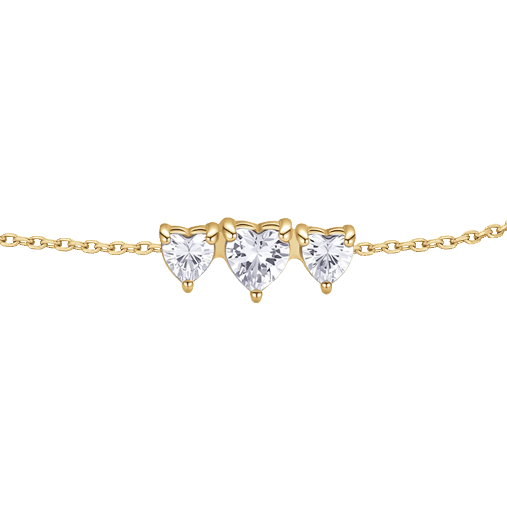 Bracciale donna in acciaio IP gold, cuori con zirconi bianchi Lunghezza: 16 + 3 cm Misura cuore: 5 x 5 – 4 x 4 mm