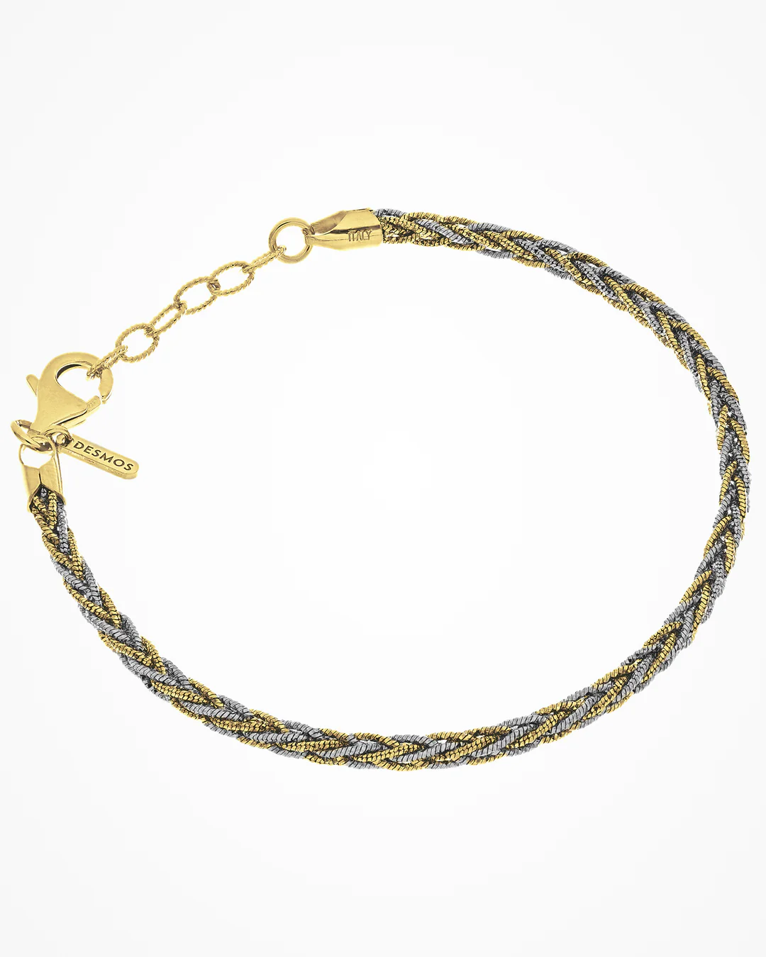Bracciale in argento sottile con catene intrecciate a creare volume ed effetto semi-rigido.