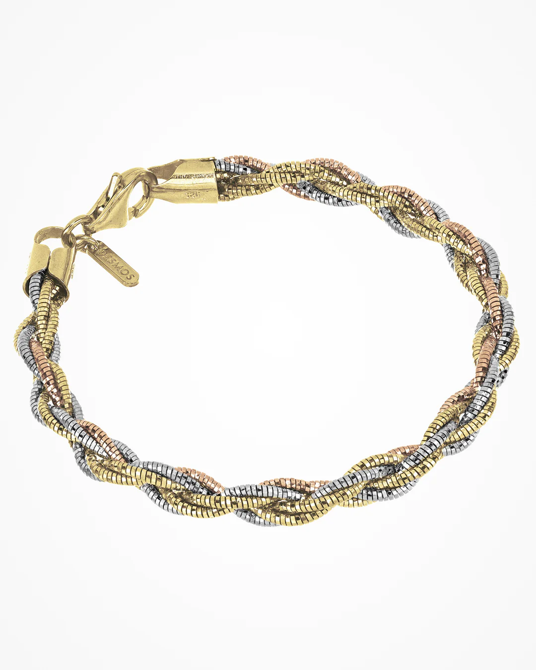 Bracciale in argento multifilo intrecciato. L’effetto semi-rigido permette di mantenere una forma tonda quando indossata.