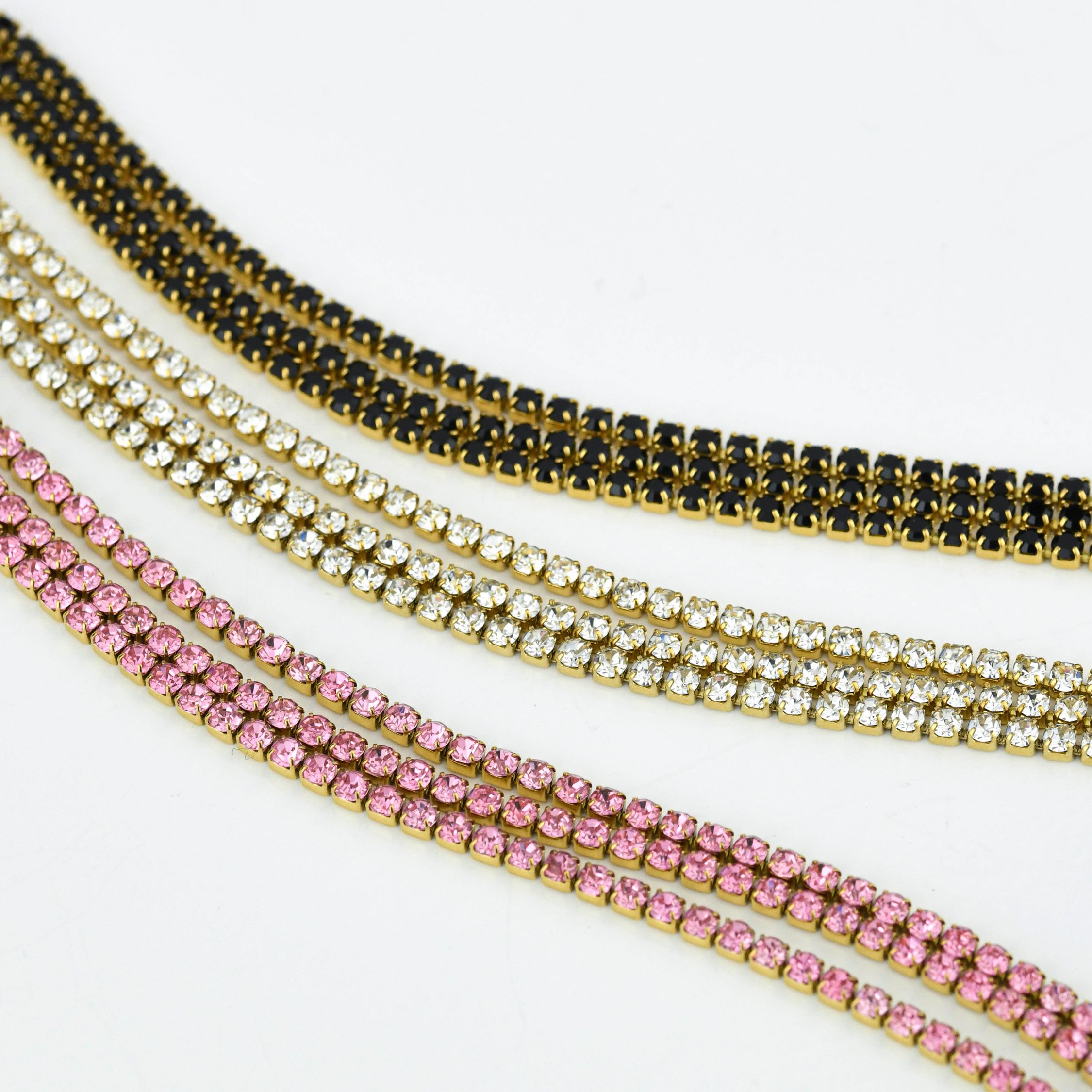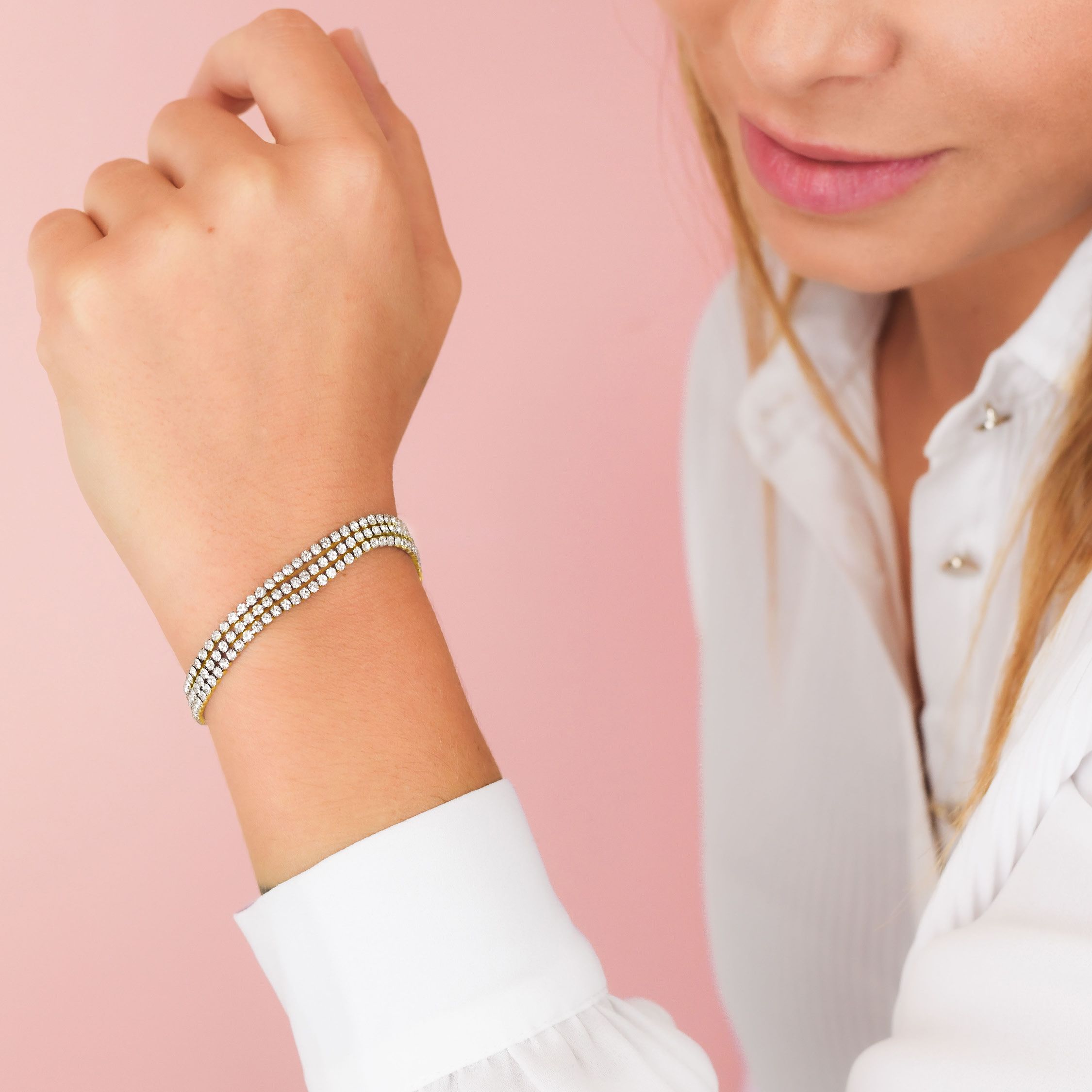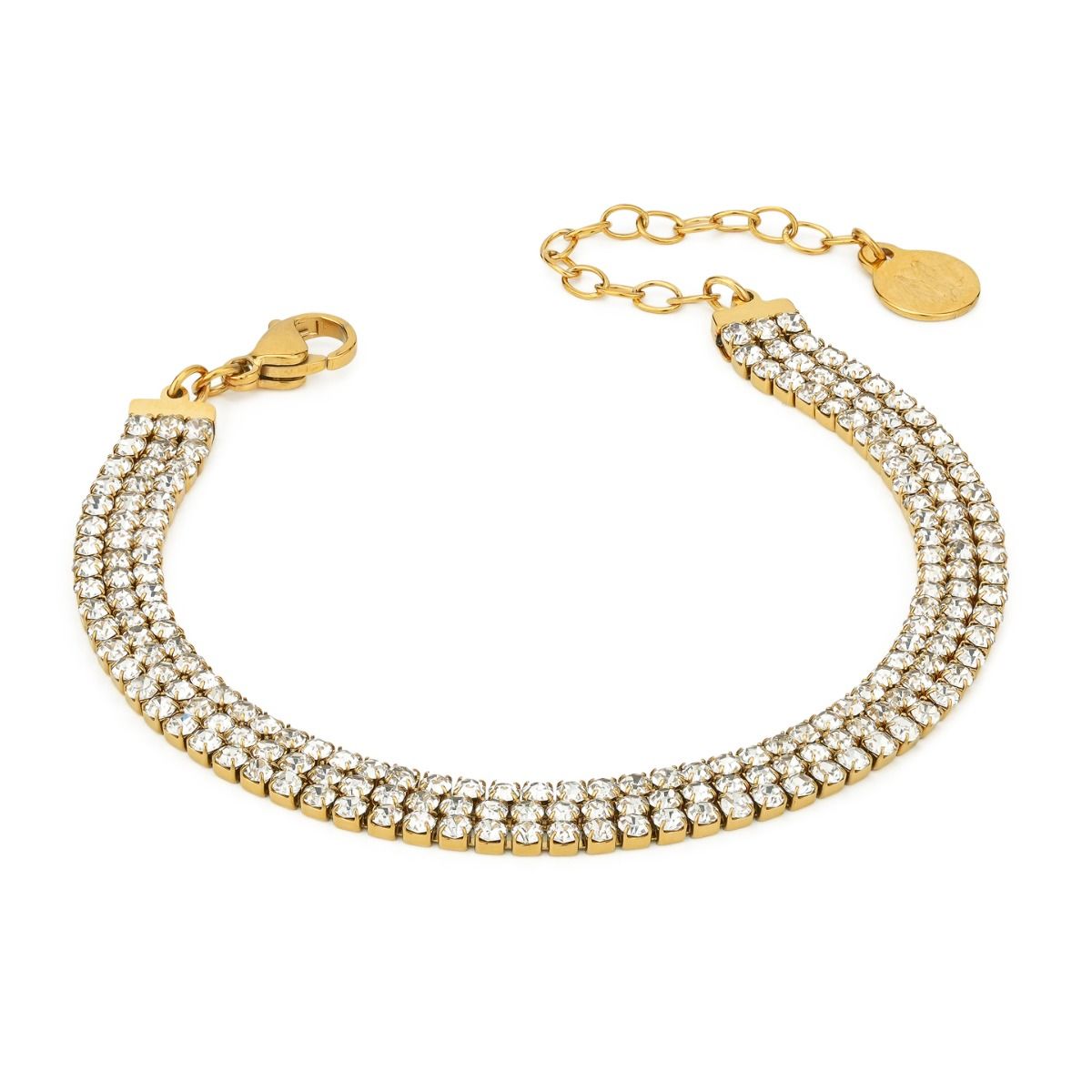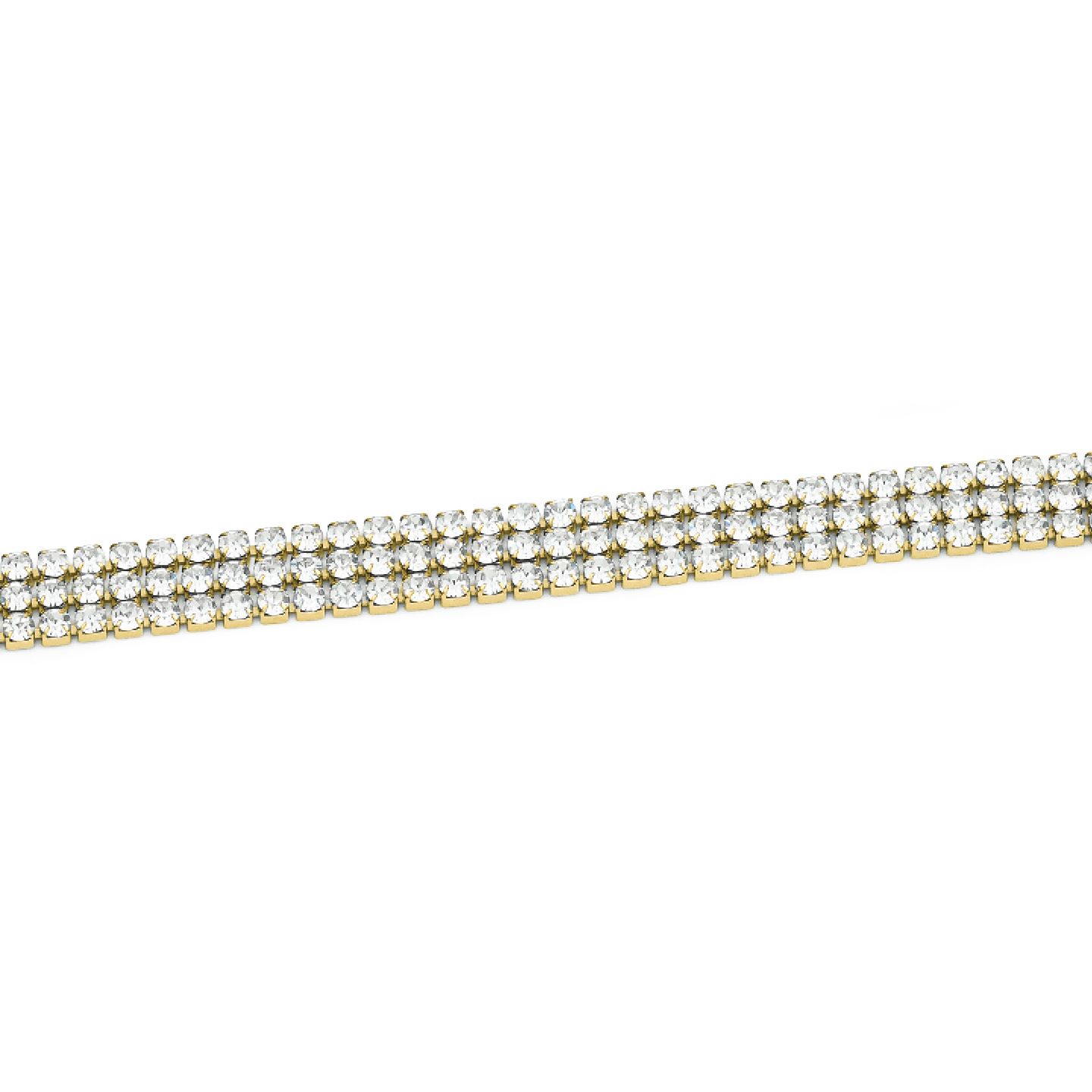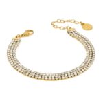 Bracciale placcato oro giallo, modello tennis, a tre fili di zirconi bianchi
