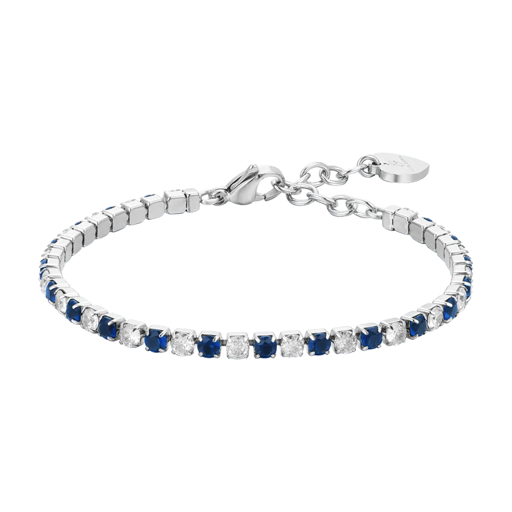 BRACCIALE TENNIS DONNA CRISTALLI BLU E BIANCHI