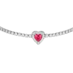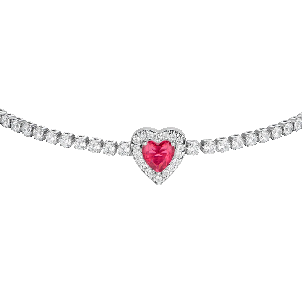 BRACCIALE TENNIS DONNA IN ACCIAIO CON CUORE CON ZIRCONI ROSSI E BIANCHI