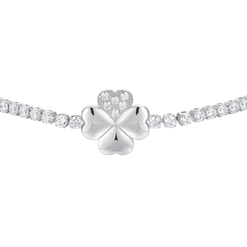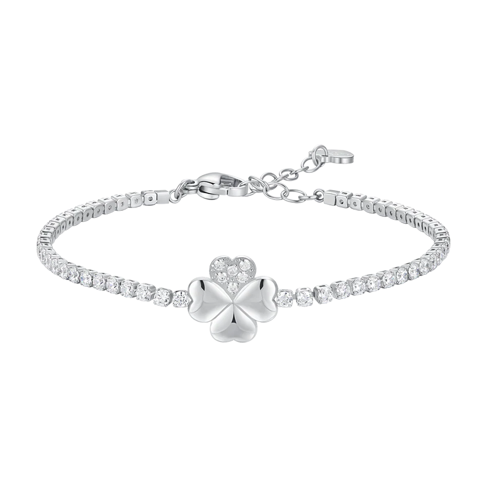 BRACCIALE TENNIS DONNA IN ACCIAIO CON QUADRIFOGLIO E PUNTI LUCE ZIRCONE BIANCO