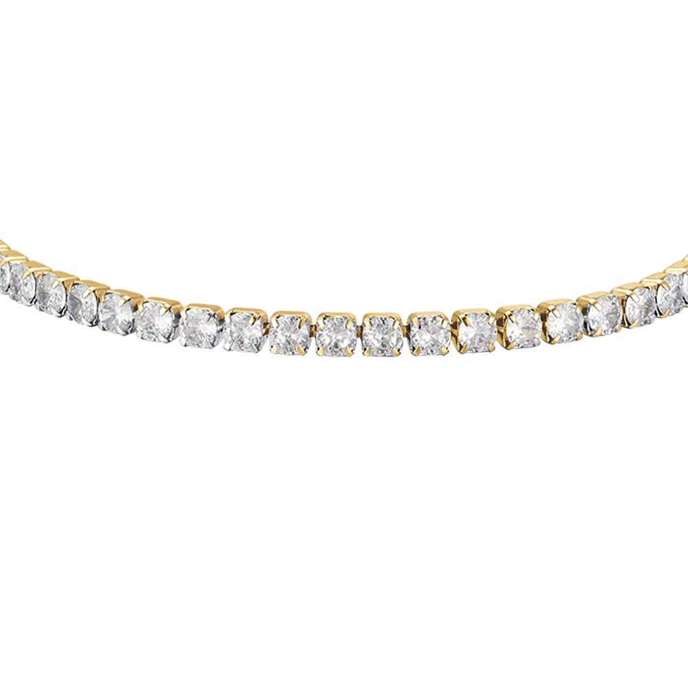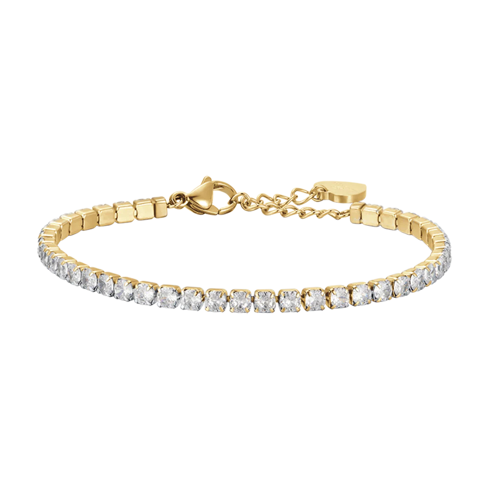 BRACCIALE TENNIS DONNA IN ACCIAIO IP GOLD CON CRISTALLI BIANCHI