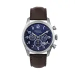 Il cronografo maschile della collezione Classic Elegance ha cassa in acciaio e cinturino in morbida pelle marrone, dal look classico. Il quadrante blu con effetto sunray ha i numeri arabi agli indici che permettono un’immediata lettura dell’ora.