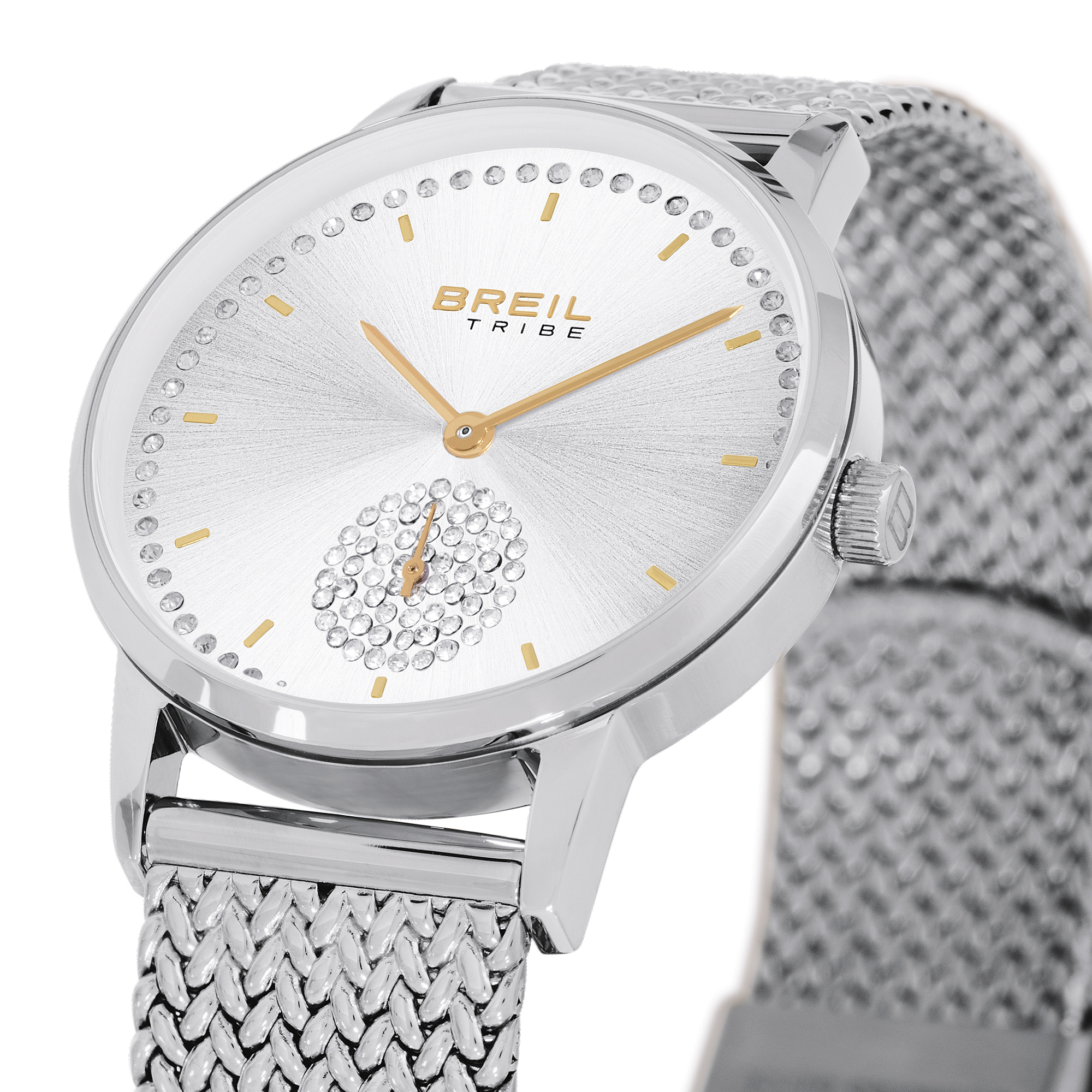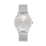 L’orologio da donna Drop, in acciaio lucido, si distingue per il movimento piccolo dei secondi. Il quadrante silver con effetto sunray cattura la luce creando riflessi eleganti, mentre il rehault impreziosito da cristalli dona un tocco luminoso. Spicca il contatore a ore 6 impreziosito da pavè di cristalli bianchi, mentre gli indici silver, le sfere gold e il bracciale in maglia mesh completano con eleganza questo segnatempo, avvolgendo il polso in modo sofisticato.