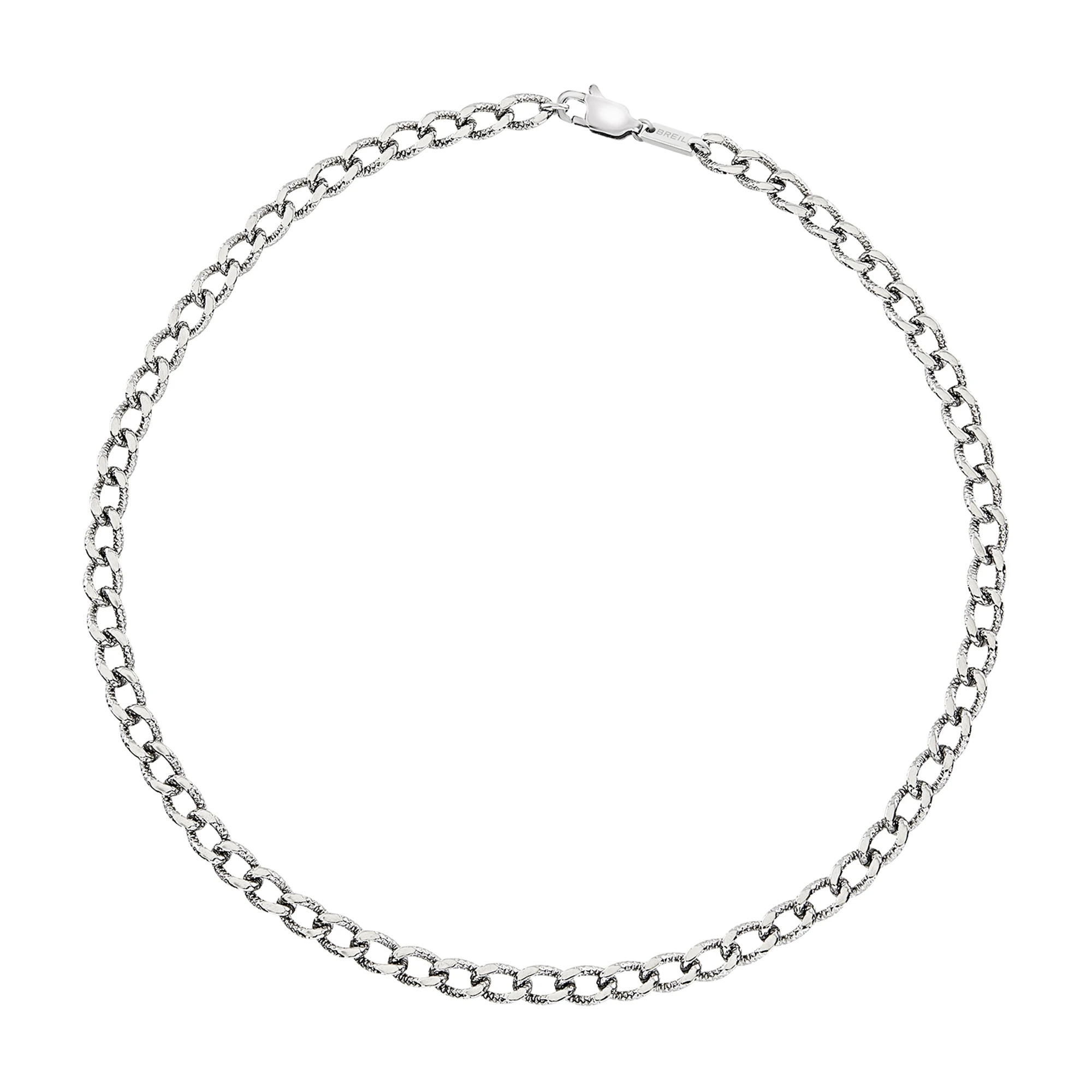 La collana da uomo Gritty ha un carattere deciso, ma riesce a trasmettere una sofisticata eleganza grazie alla sua particolare costruzione: la catena groumette che la caratterizza è infatti in acciaio con una particolare finitura diamantata che la rende luminosa e sfaccettata. La chiusura regolabile permette di modificare facilmente la misura della collana.