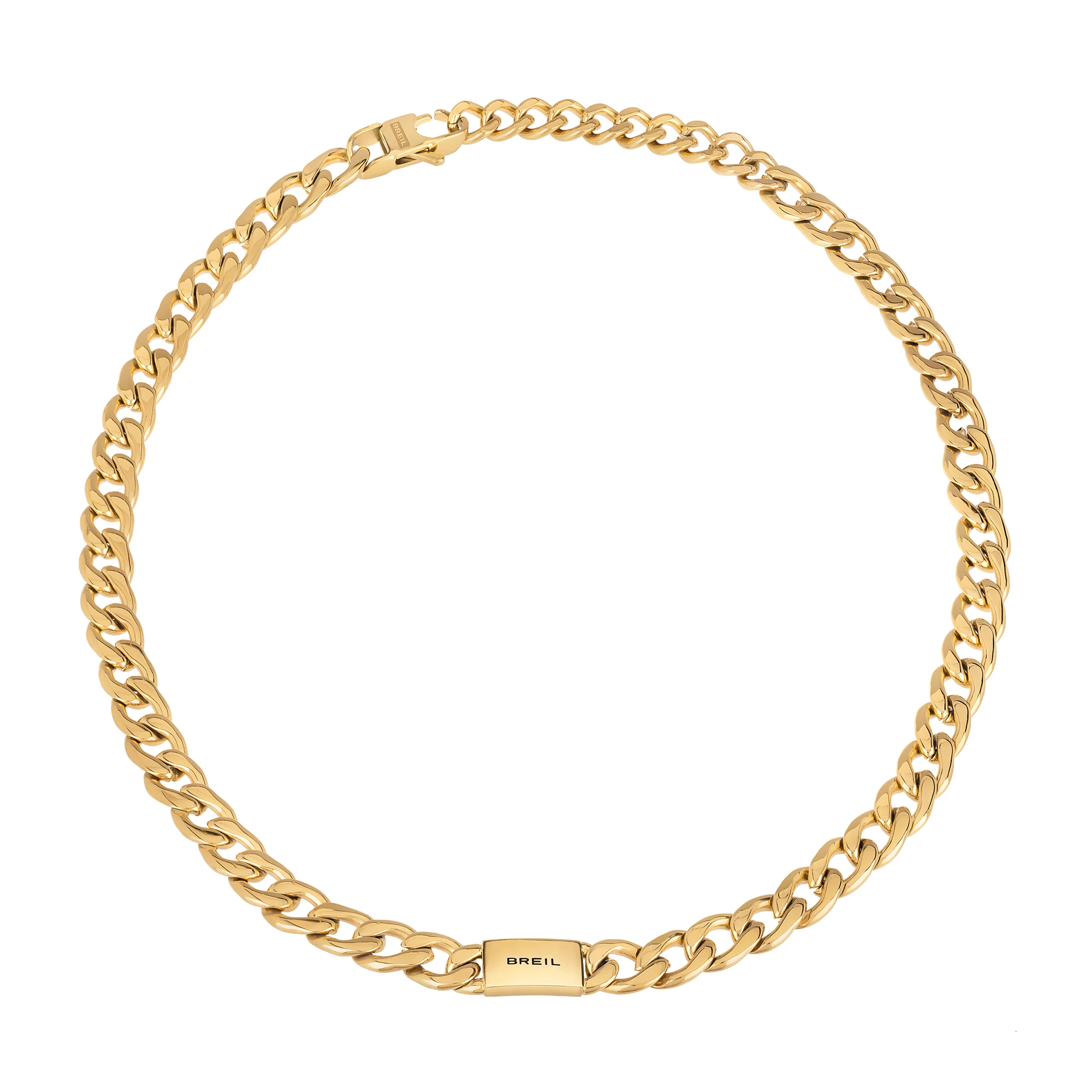 La collana da uomo Logomania è in acciaio IP gold, massiccia ma allo stesso tempo avvolgente e confortevole. La catena groumette è spezzata da una piastrina in acciaio su cui il logo Breil appare ben visibile. Per chi ama non passare inosservato.