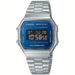 Orologio da uomo di Casio della collezione Vintage. Orologio digitale realizzato in acciaio con diametro cassa di 36,3mm e classificazione di impermeabilità. Cinturino in acciaio inox con chiusura regolabile. Funzioni: Illuminazione; Cronometro – 1/100 sec – 1 ora; Allarme giornaliero; Calendario automatico; Formato 12/24 ore; 7 anni – 1 batteria.