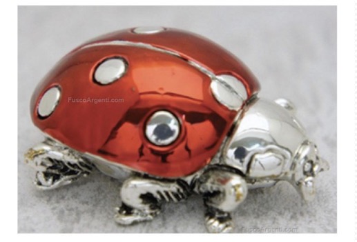 Coccinella con zampe in resina argentata.