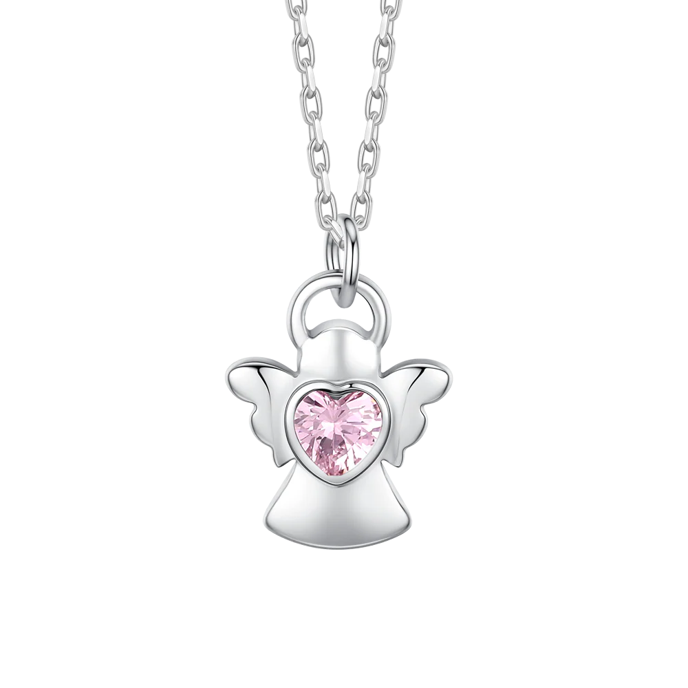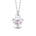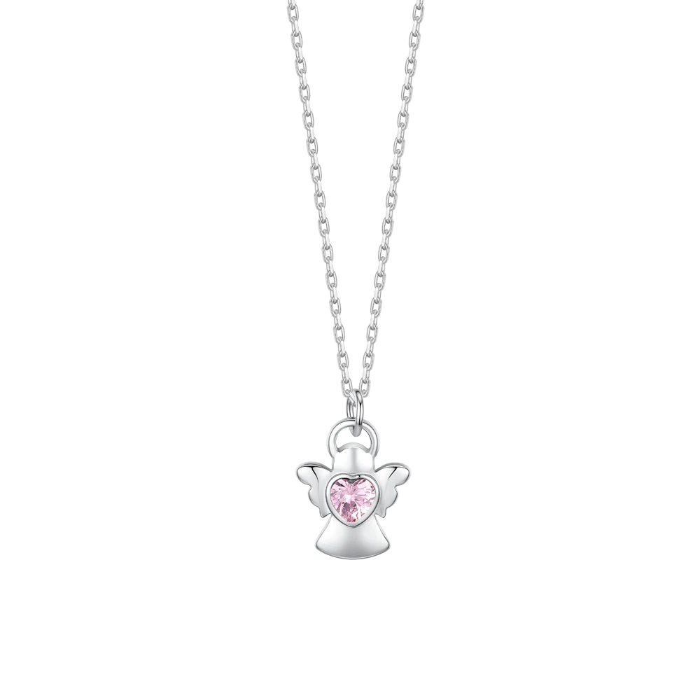 COLLANA BAMBINA IN ACCIAIO ANGELO CON ZIRCONE ROSA