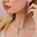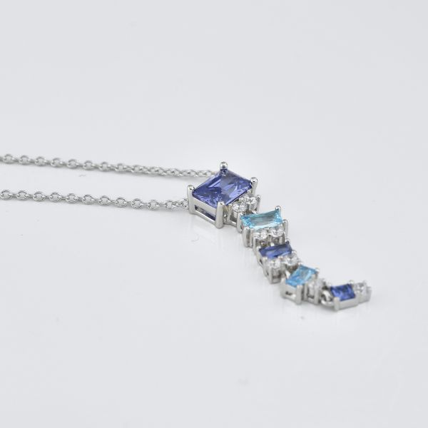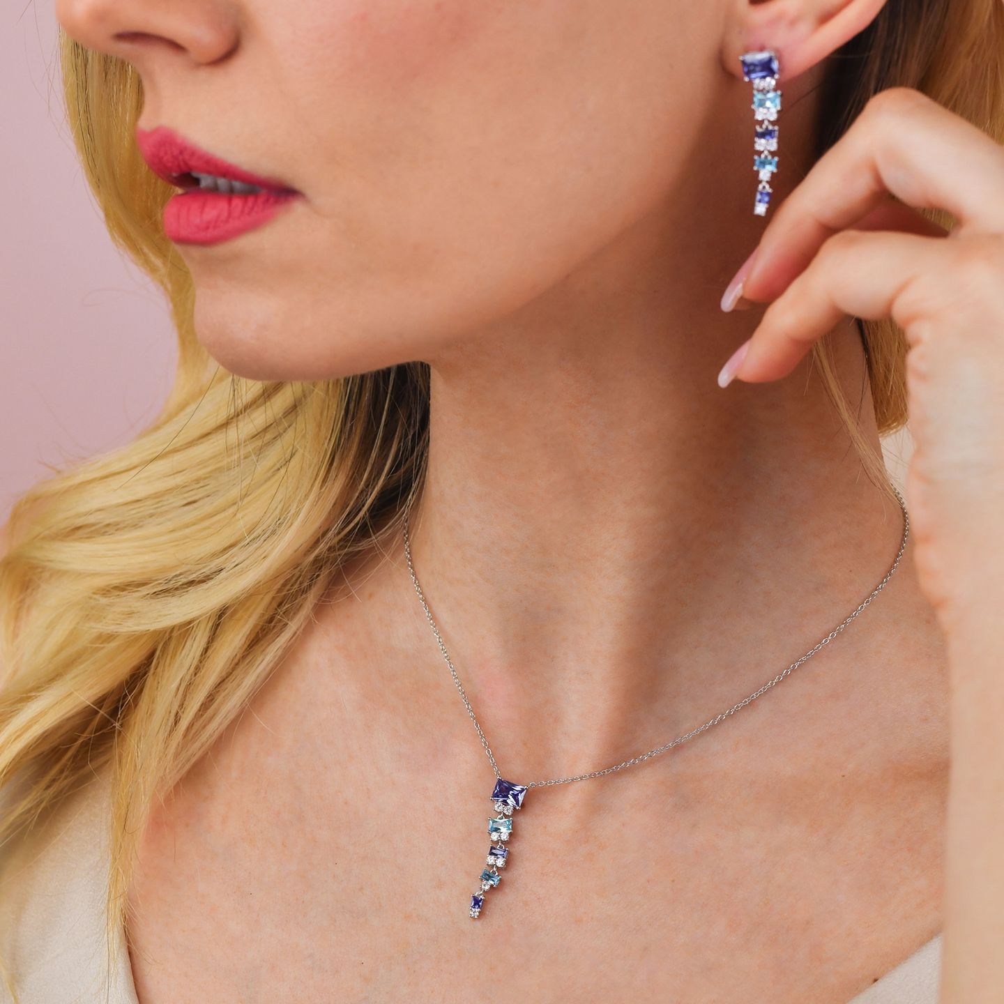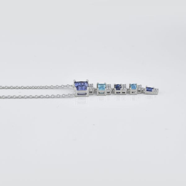 Collana in argento con pendente di zirconi degradé di colore tanzanite, acquamarina e bianco.