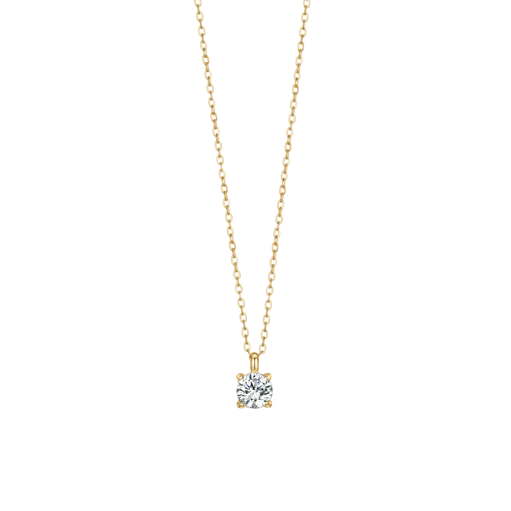 Collana in acciaio IP gold con zircone bianco Lunghezza: 40 + 5 cm Misura zircone: 5 mm Un accessorio versatile e senza tempo, questa collana in acciaio è il complemento perfetto per ogni outfit, da casual a elegante.