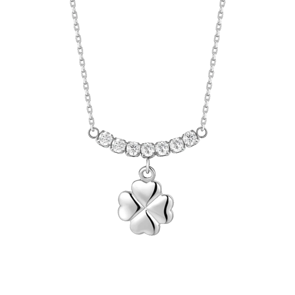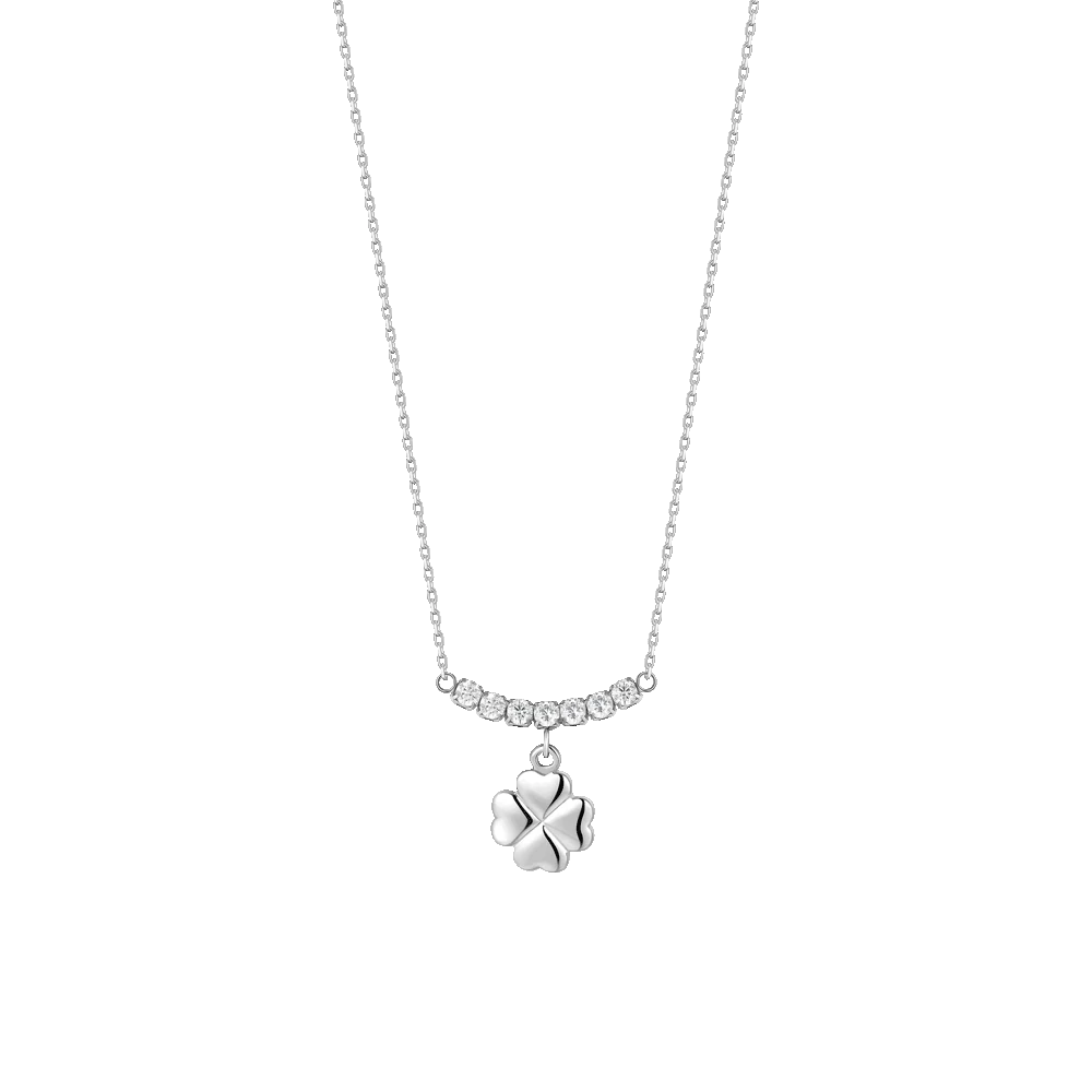 COLLANA DONNA IN ACCIAIO CON QUADRIFOGLIO E ZIRCONI BIANCHI