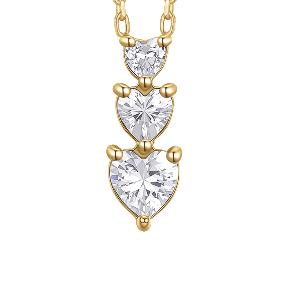 Collana donna in acciaio IP gold con cuori con zirconi bianchi Lunghezza: 40 + 5 cm Misura cuore: 5 x 5 – 4 x 4 – 3 x 3 mm