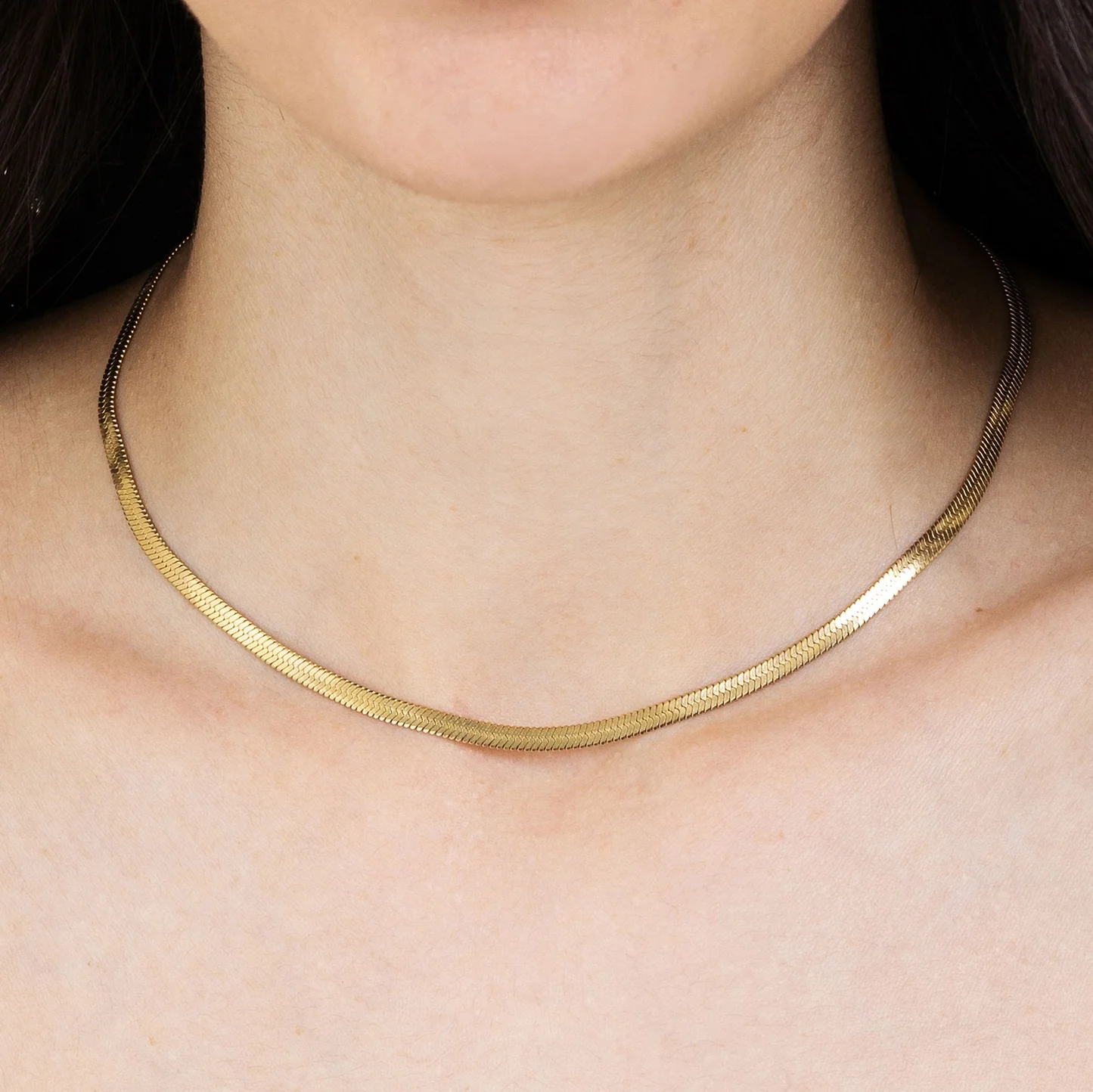 Collana in acciaio dorato. Lunghezza: 38 + 5 cm. Larghezza maglia: 4 mm Spessore maglia: 1 mm La collana dorata da donna è un gioiello molto alla moda ed elegante, perfetto per dare stile ad un look troppo basic. L’accesorio diventa subito protagonista dell’outfit grazie alla luminosità che emana la particolare trama della collana, un gioiello che non passa inosservato ma che si fa notare per l’eleganza. Scelta adeguata per un’idea regalo impegnativa, non è difficile da sfoggiare con stili e abiti differenti.