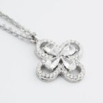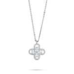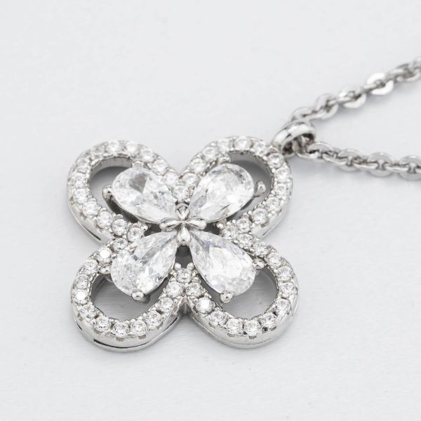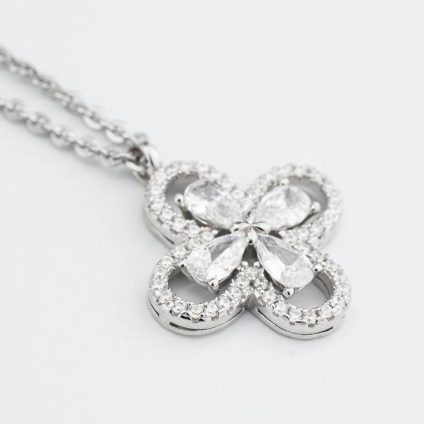 Collana girocollo con quadrifoglio pendente definito da zirconi e fiore centrale