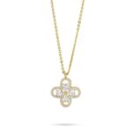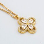 Girocollo in bronzo placcato oro giallo con quadrifoglio pendente impreziosito da zirconi e fiore centrale di colore crystal.