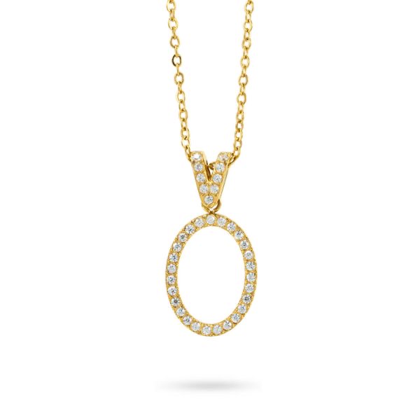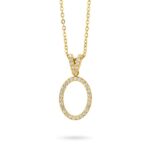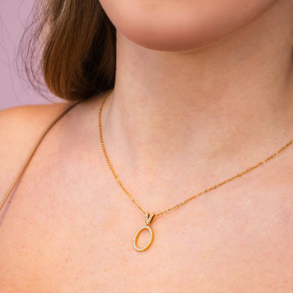 Girocollo in acciaio placcato oro giallo con pendente a forma ovale definita da zirconi.