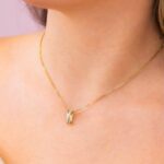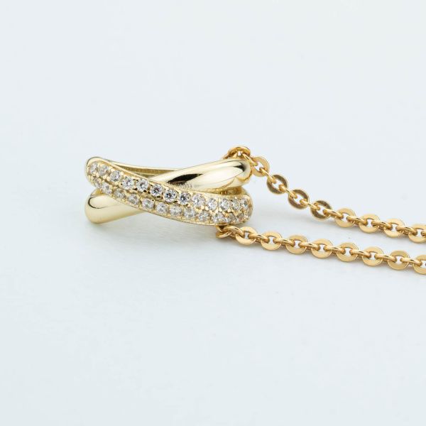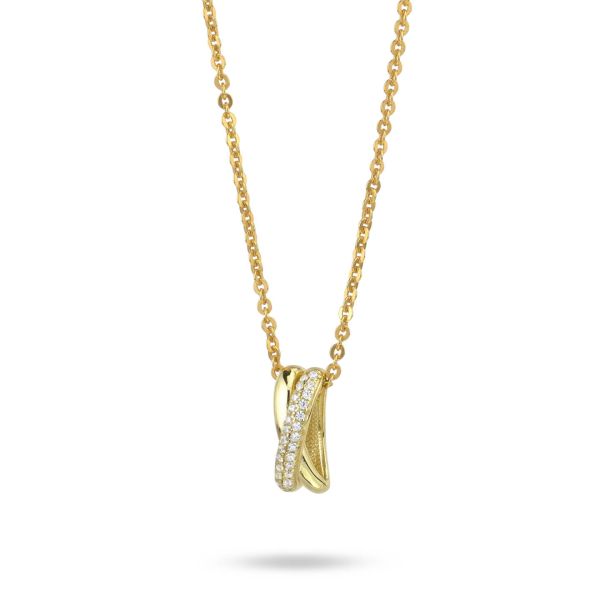 Girocollo in argento placcato oro giallo con modulo pendente composto da una doppia fascia incrociata con una banda liscia e una in pavè di zirconi.