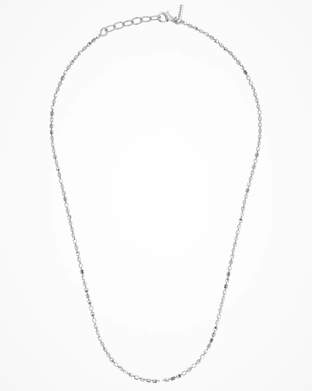 Collana in argento con piccoli elementi cilindrici diamantati che regalano una brillantezza unica, che dura nel tempo.