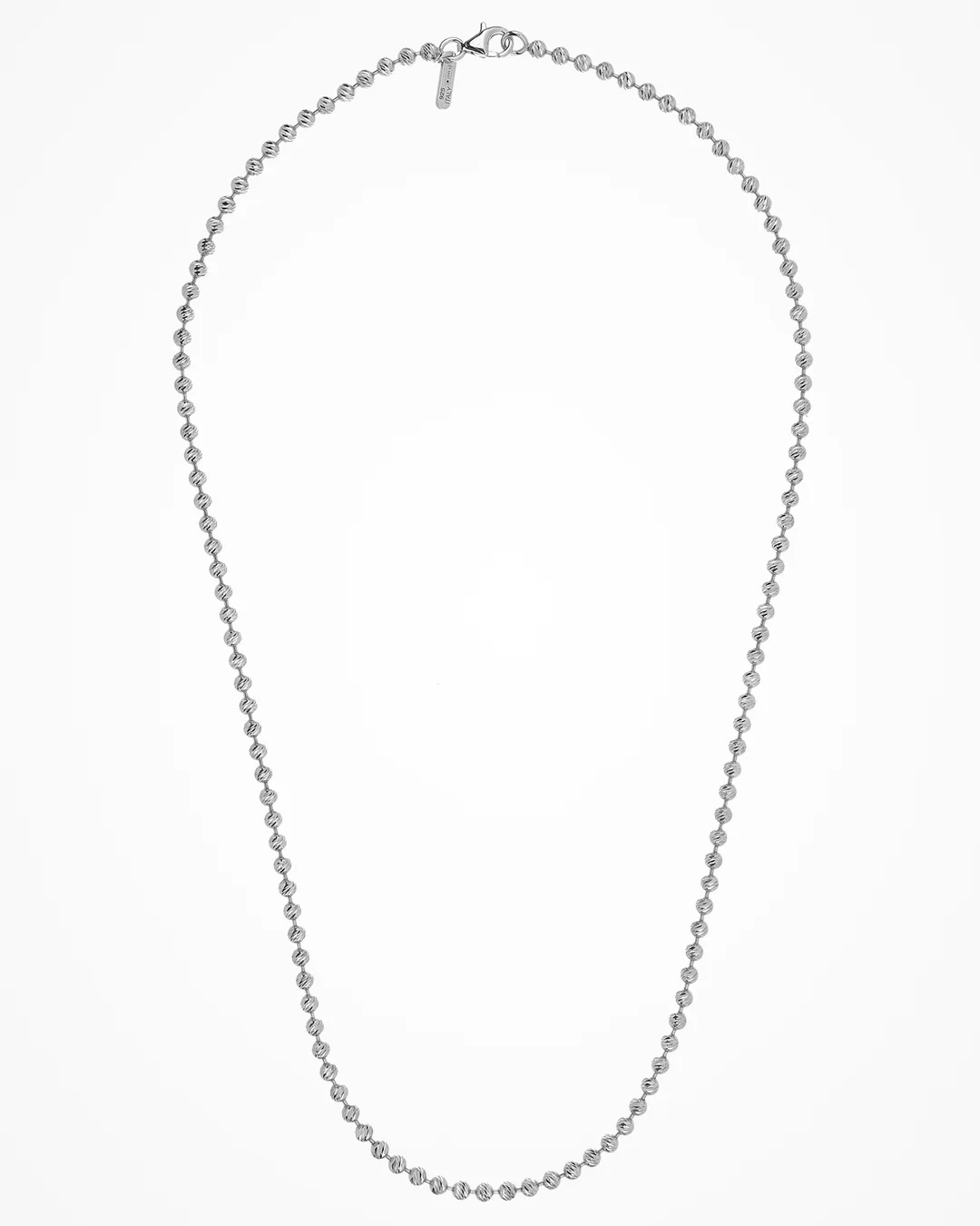 Collana in argento con una sottile catena di palline diamantate che regalano una brillantezza che dura nel tempo.