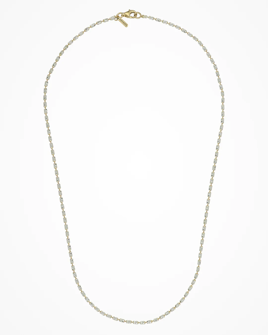 Collana in argento con una sottile catena di elementi cilindrici diamantati che regalano una brillantezza unica, che dura nel tempo.