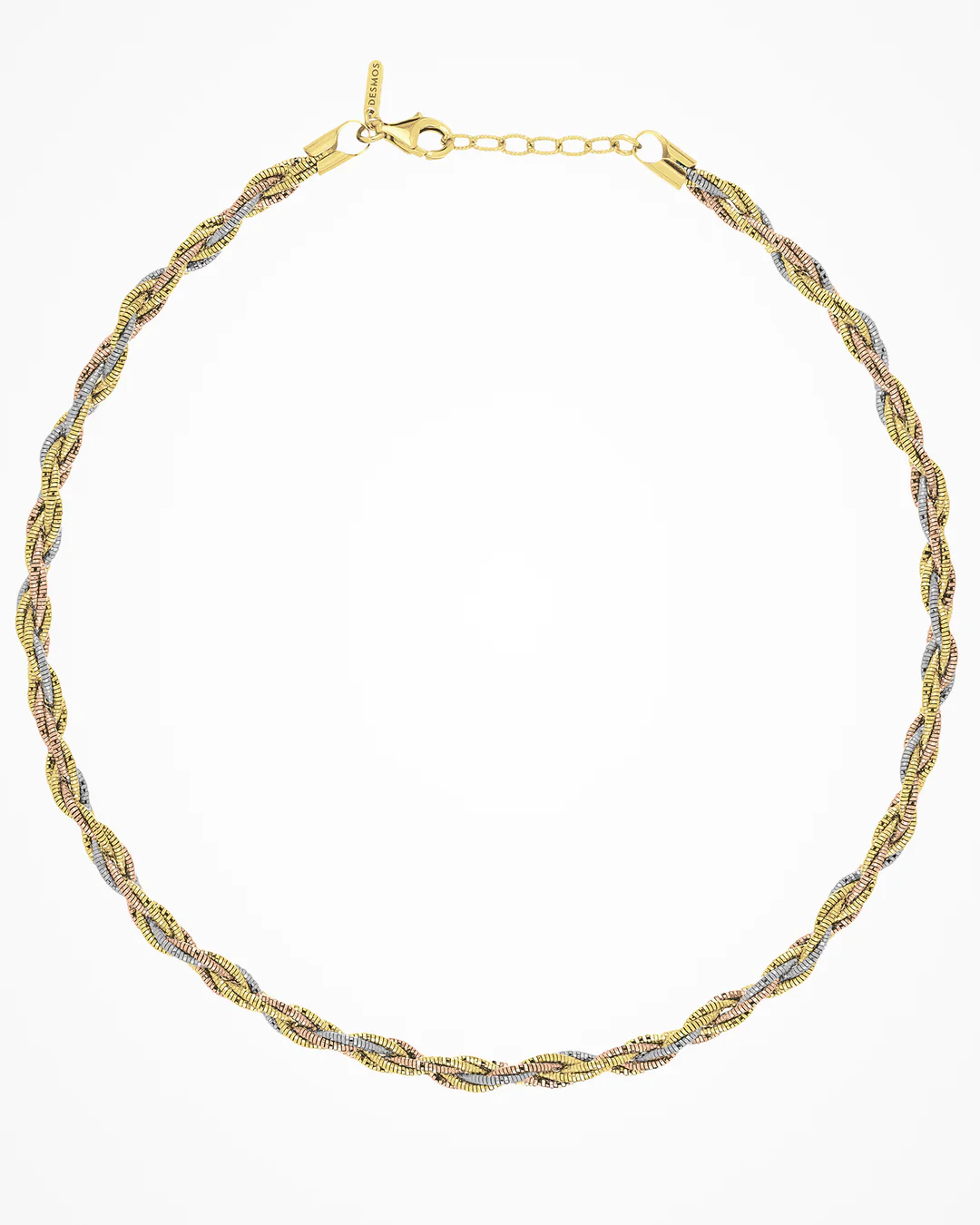 Collana in argento multifilo intrecciata. L’effetto semi-rigido permette di mantenere una forma tonda quando indossata.
