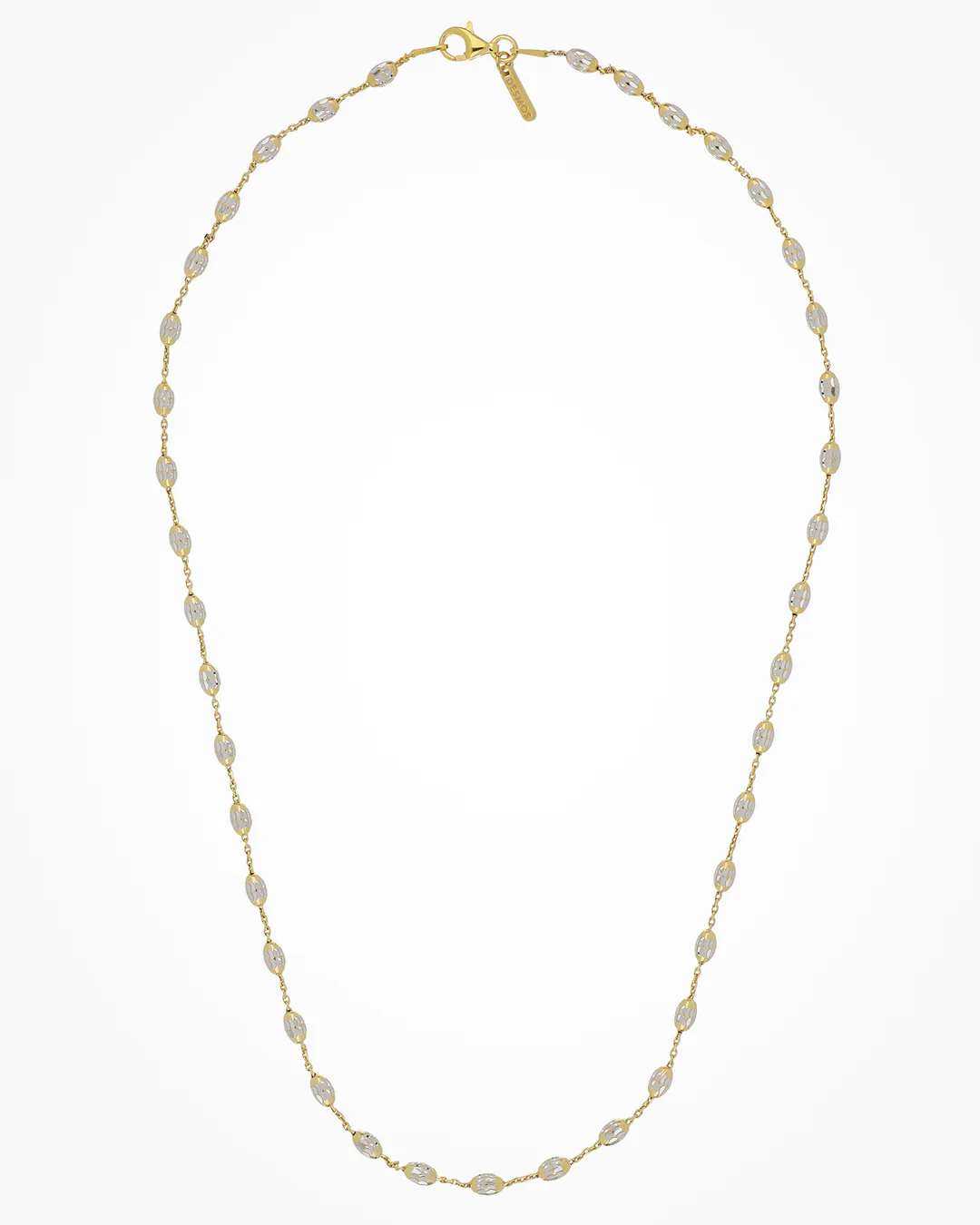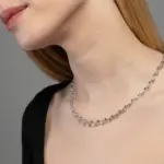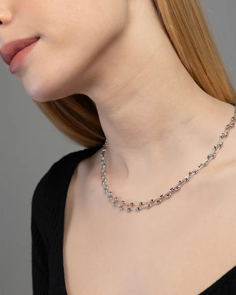 Collana in argento con catena sottile e numerosi elementi ovali resi brillanti dalla speciale diamantatura.