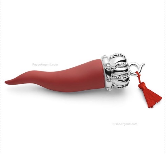 Cornetto porta fortuna rosso opaco in resina con corona argentata