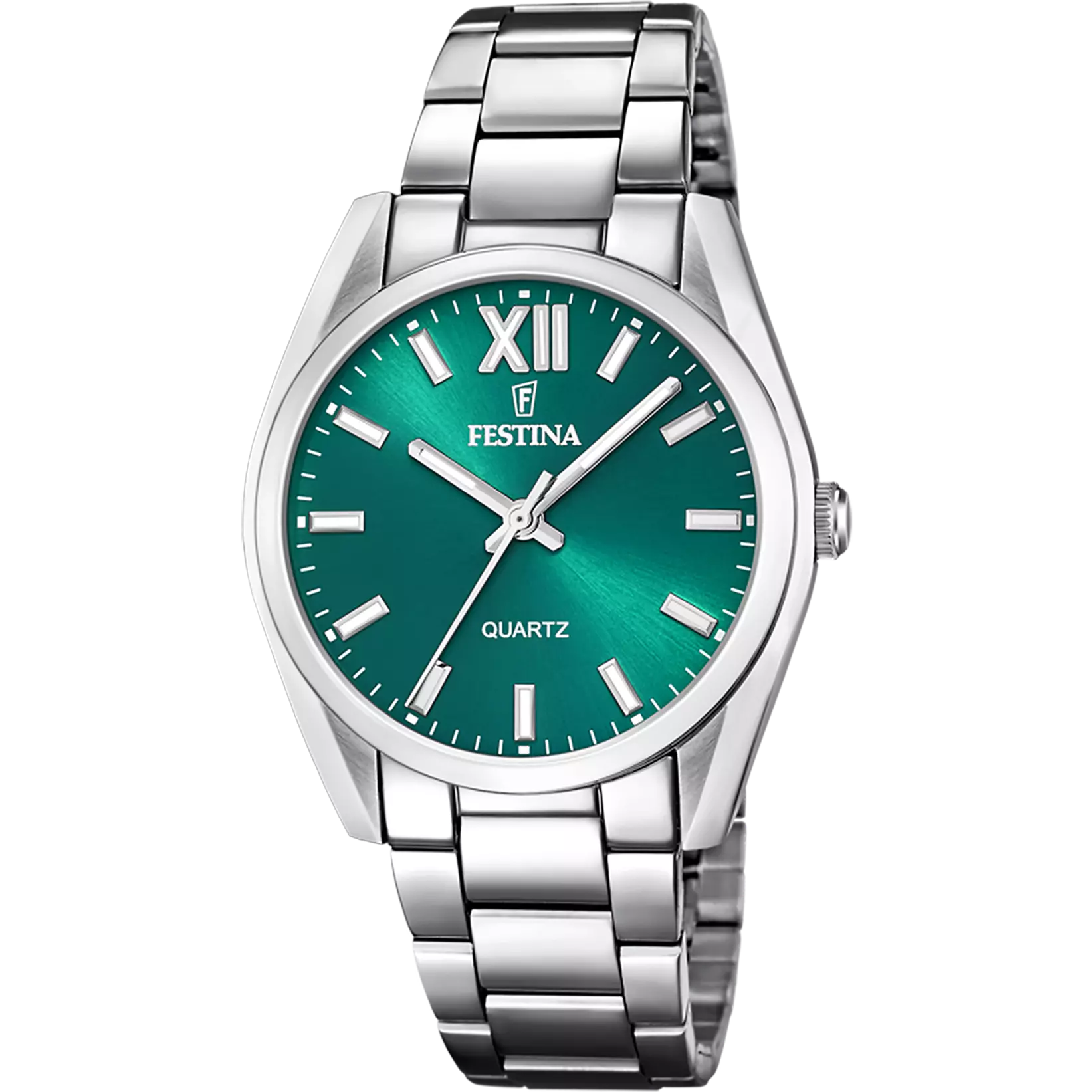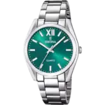 • Orologio analogico Festina della collezione Boyfriend in acciaio316L silver con quadrante verde smeraldo e indici a bastoni e numeri romani argentati.
