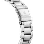 • Il bracciale è color argento con chiusura a doppio pulsante. Vetro minerale Movimento Quarzo Dimensione della cassa 36,8 mm Spessore della cassa 9,2 mm Distanza delle anse 18,8 mm Resistenza all’acqua 5ATM