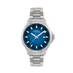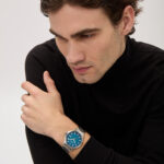 L’orologio da uomo Kai, nella versione solo tempo, unisce eleganza e carattere. Il suo quadrante blu petrolio sfumato, vero protagonista, cattura la luce con sfumature sofisticate, donando profondità e dinamismo al design. Gli indici arricchiti con trattamento luminous e datario garantiscono una perfetta leggibilità e stile.